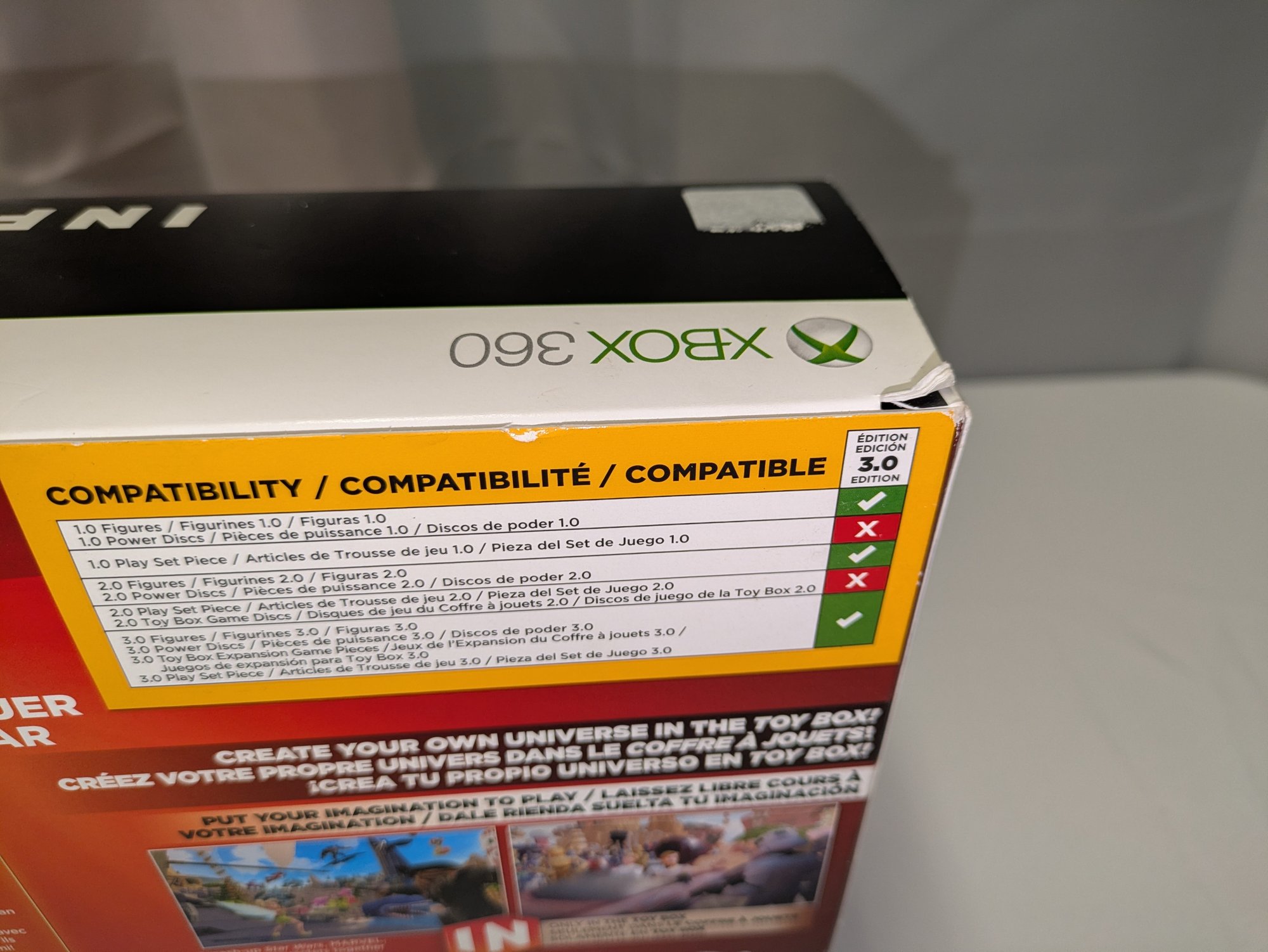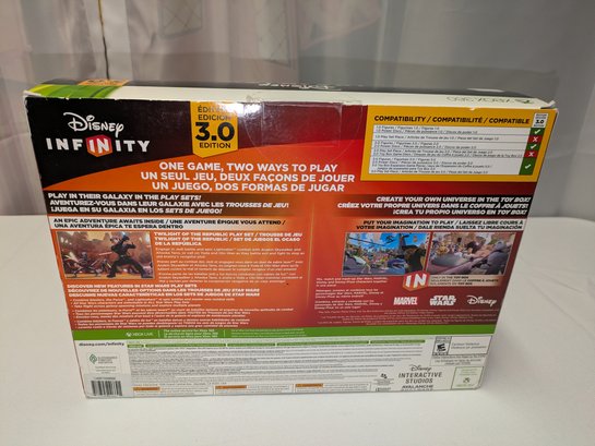 Includes the Disney Infinity 3.0 Edition video game, a figure base for the console, a playset token, and figures of Anakin Skywalker and Ahsoka Tano. Some light wear to box corners, consistent with movement. Overall, Excellent, New in the Box Condition. Please see all photos as part of the description and condition.