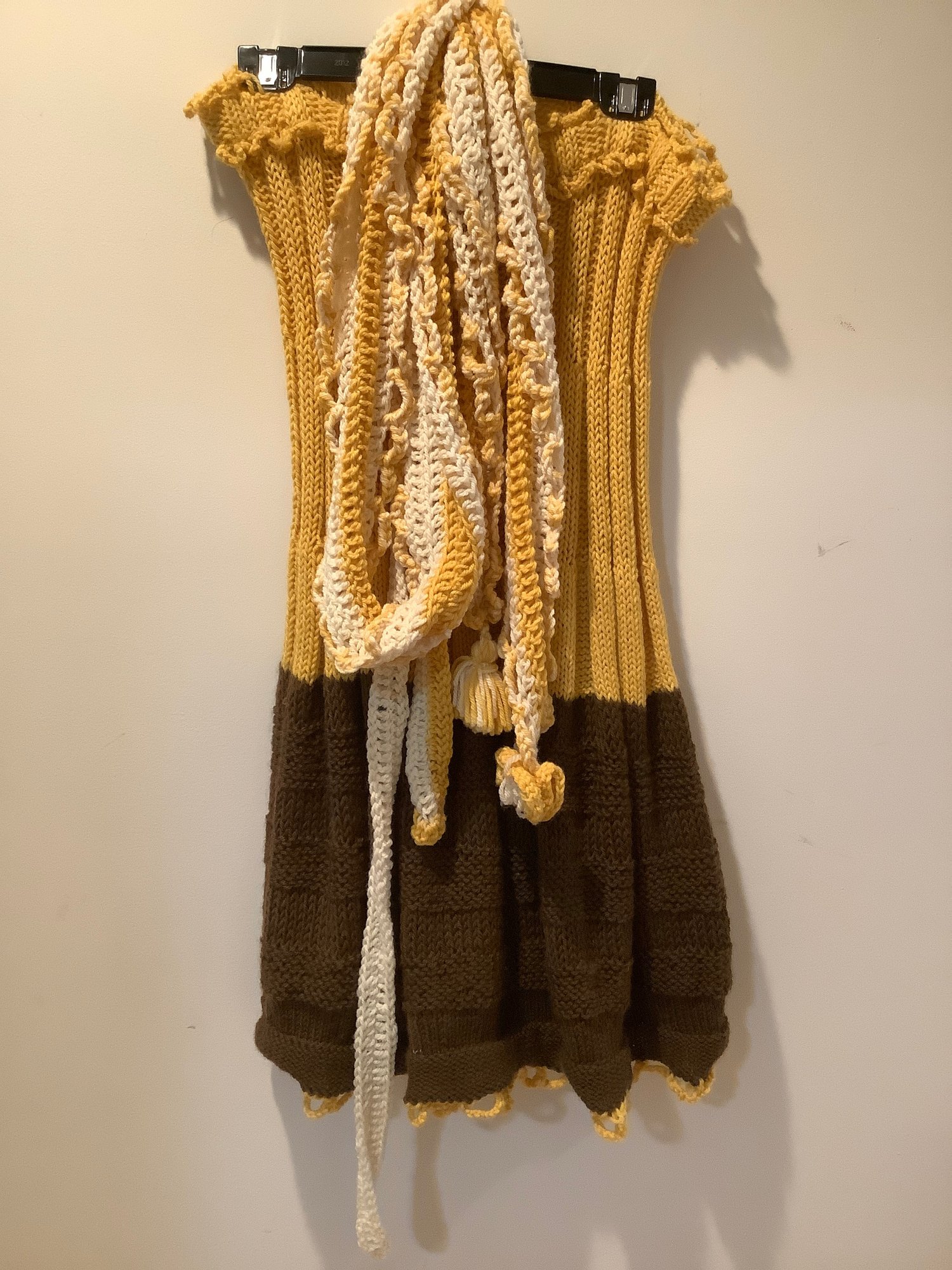 Yellow & Brown Handknit Skirt / Dress & Scarf #17