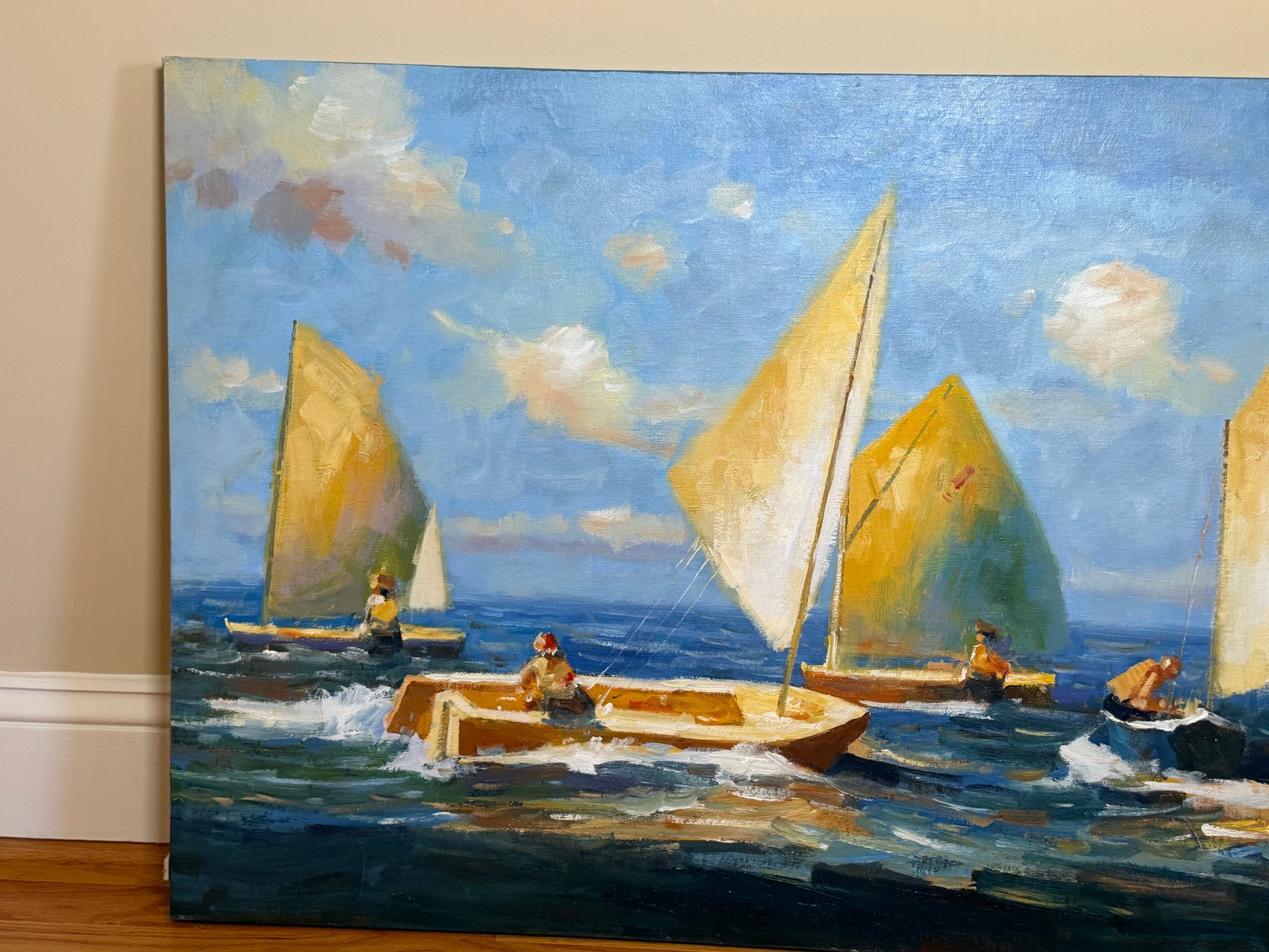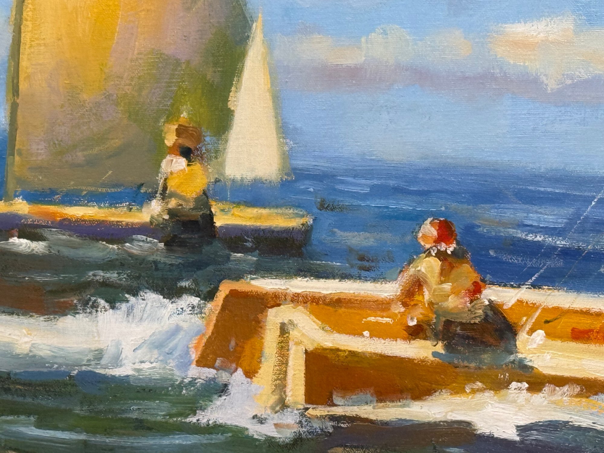 Zhen Yu Sailboat Regatta Scene Signed Original Painting