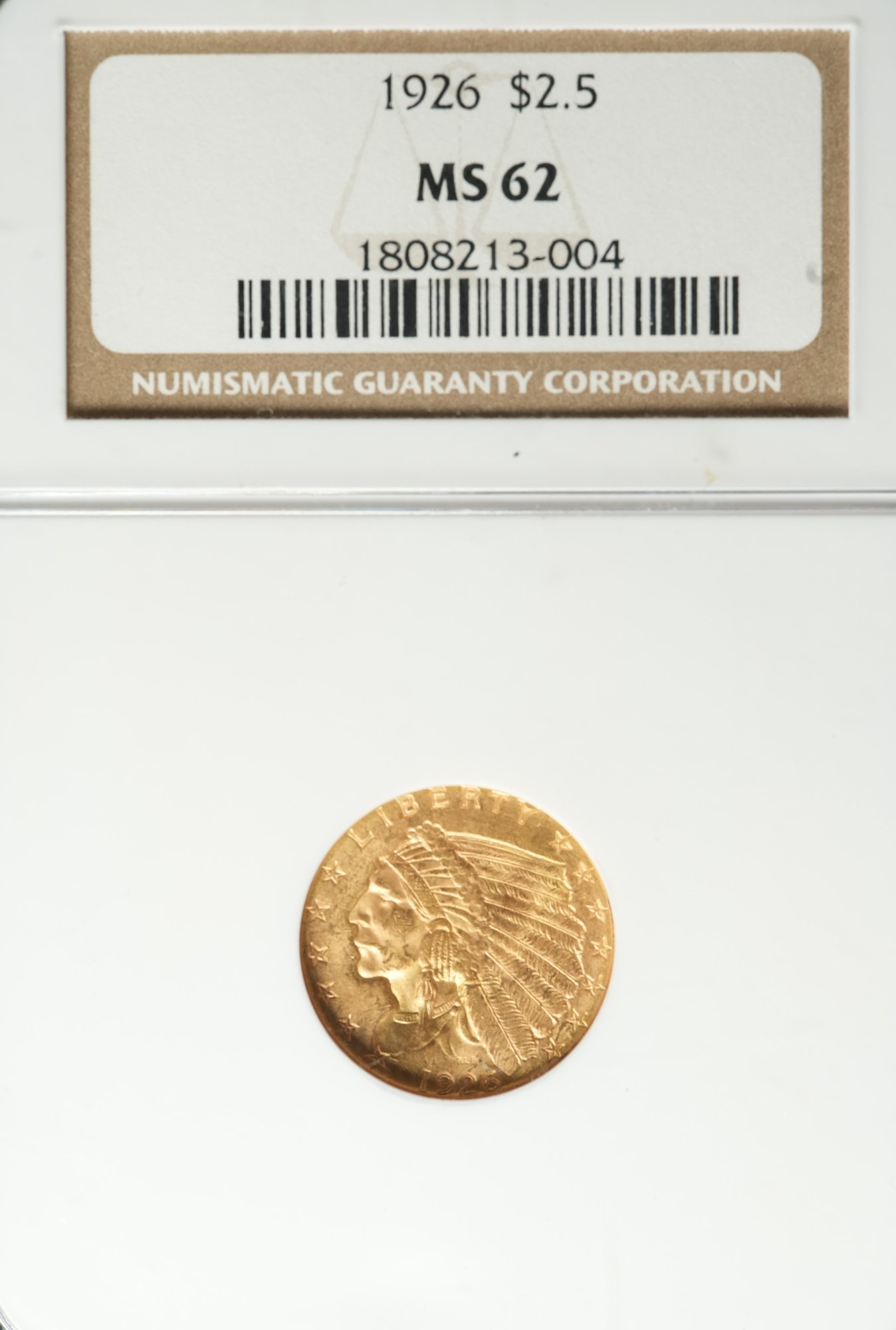 1926 $2.5 Indian Head Quarter Eagle Gold Coin - MS62