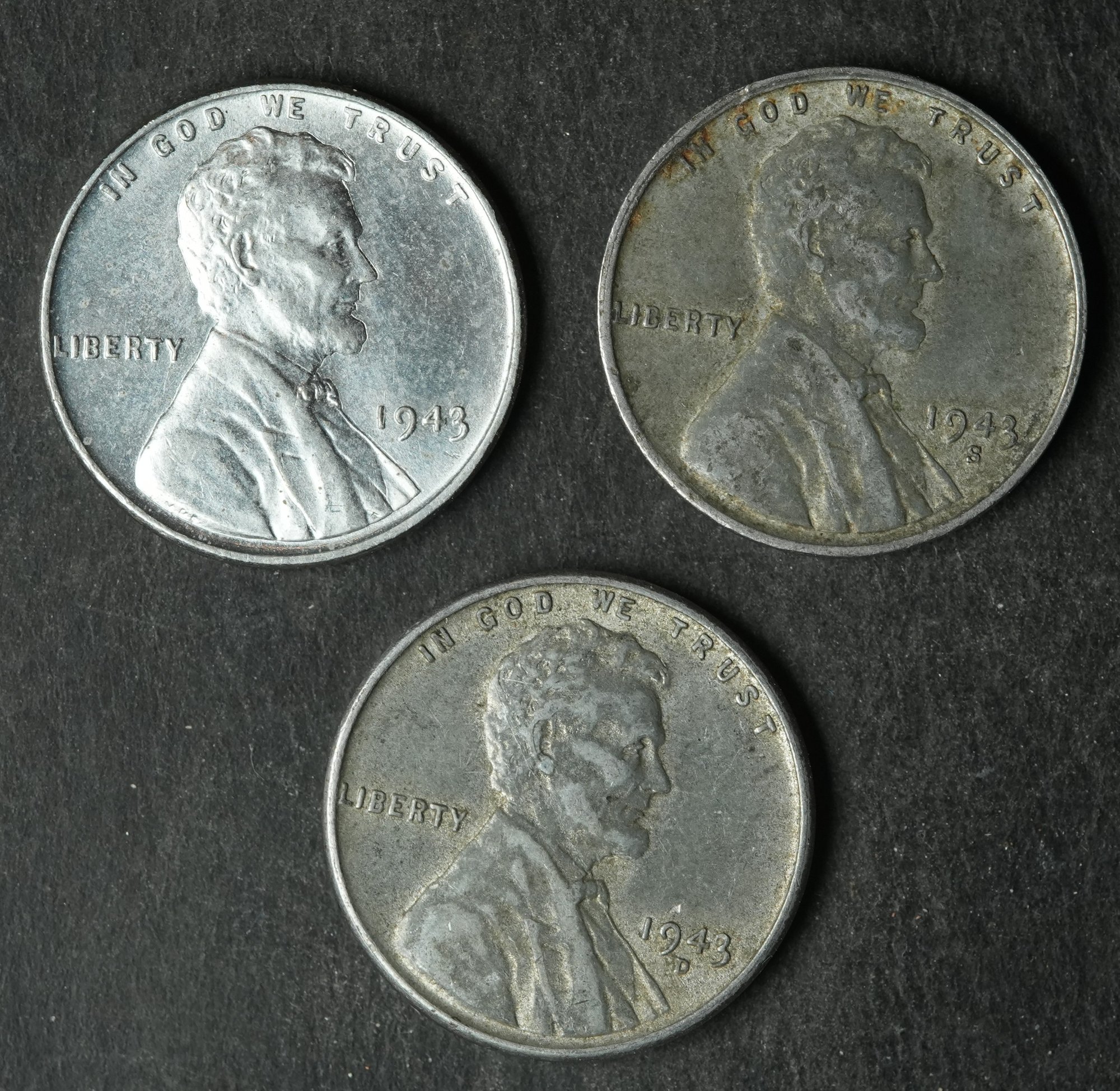 1943-P,D,S Lincoln Steel Wheat Cents