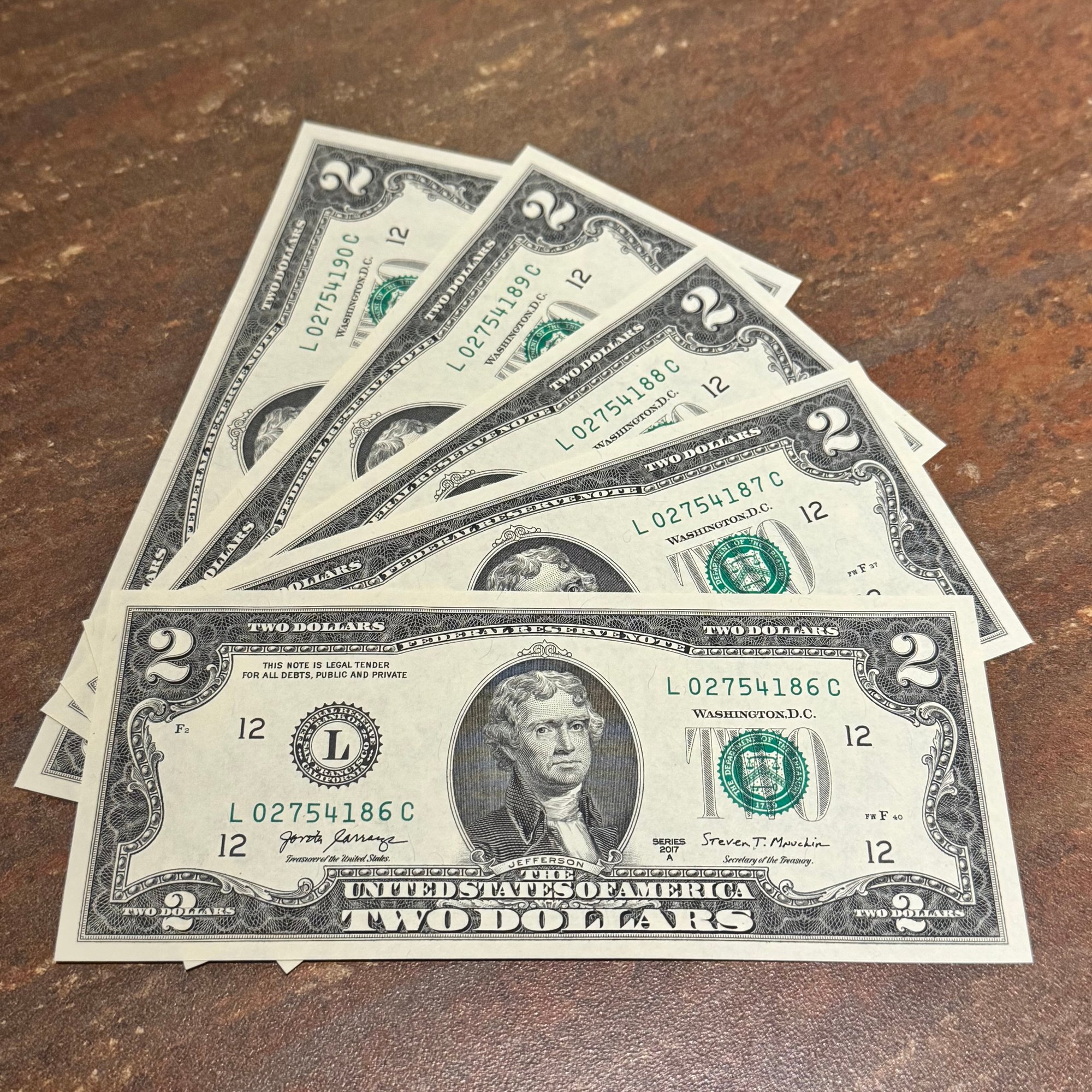 (5) 2017-A $2 Bills - Uncirculated & Consecutive