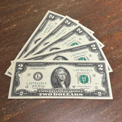 (5) 2017-A $2 Bills - Uncirculated & Consecutive