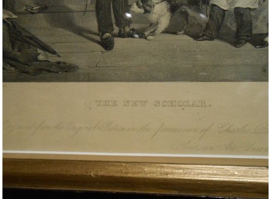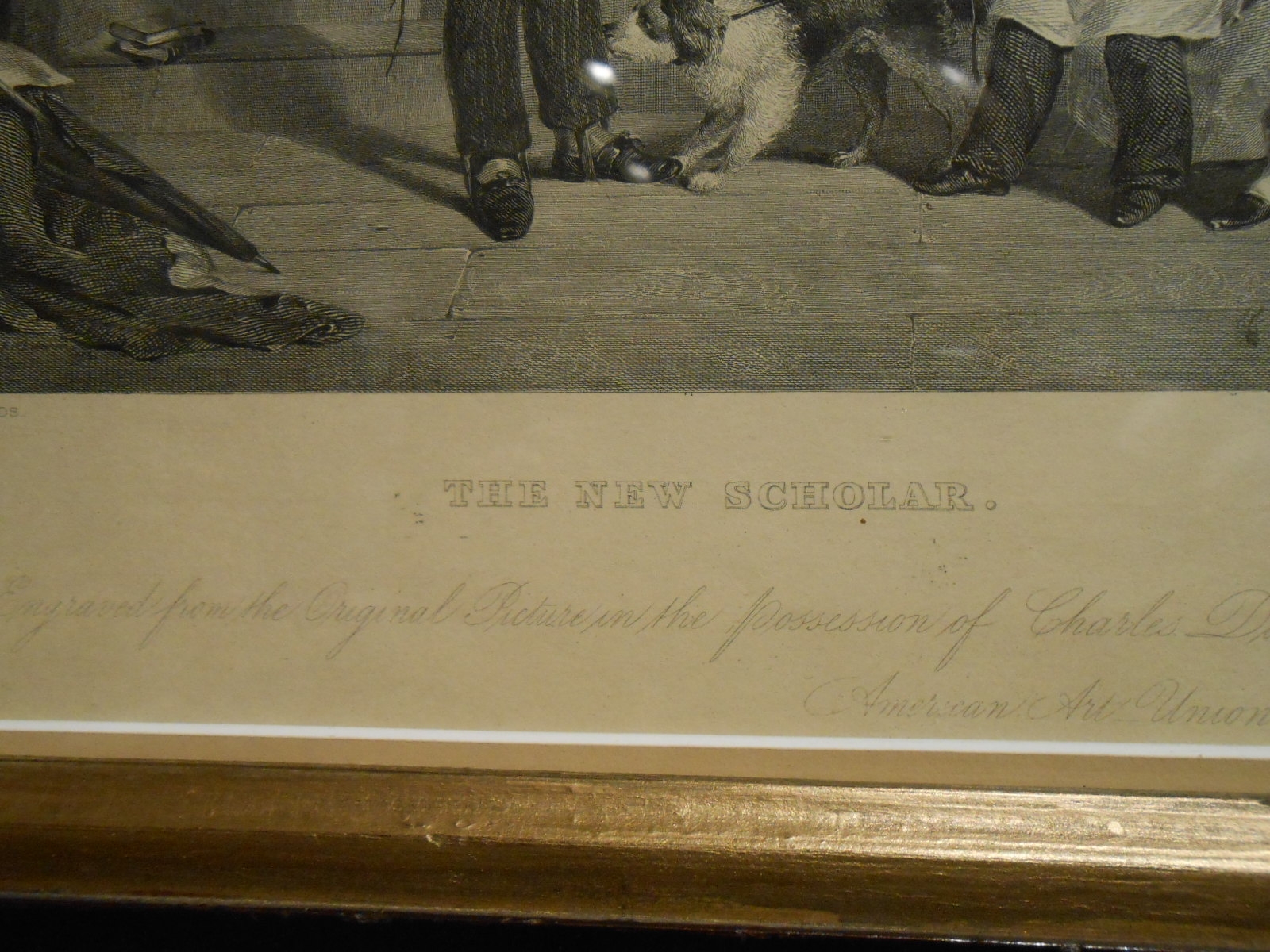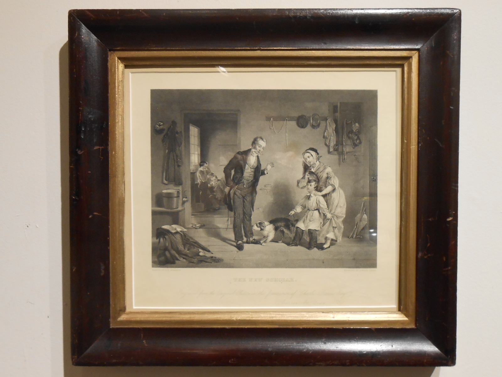 After Francis William Edmonds (American, 1806-1863), engraved by Alfred Jones (English, 1819-1900): The New Scholar, 1850. Engraving, artist name lower left, engraver name lower right, framed.10.75 x 9.75 inches sight, 15.25 x 14.25 inches framed.Private Collection, New England