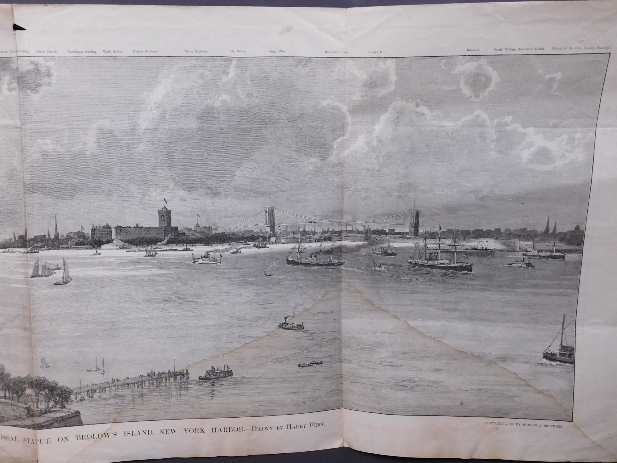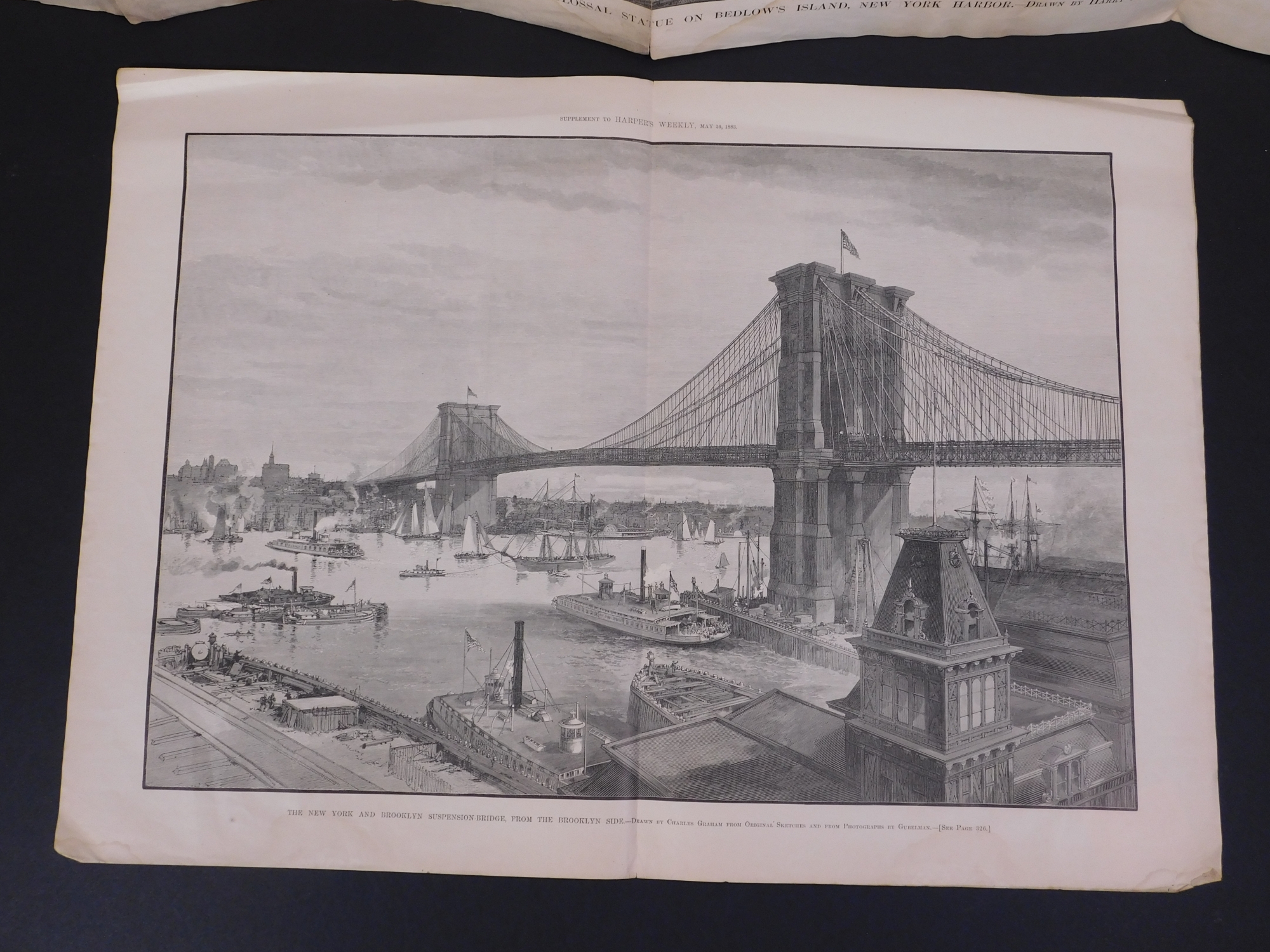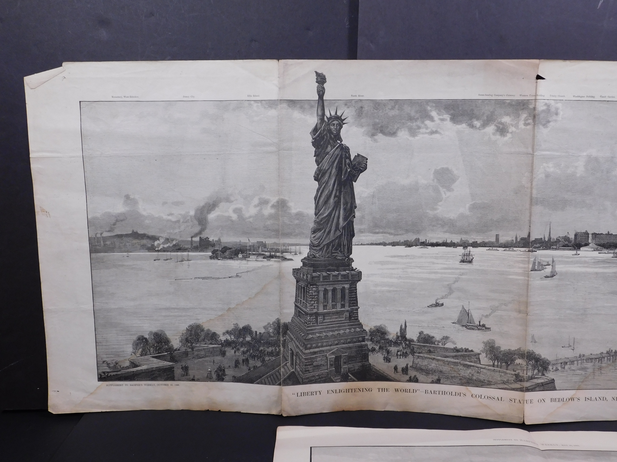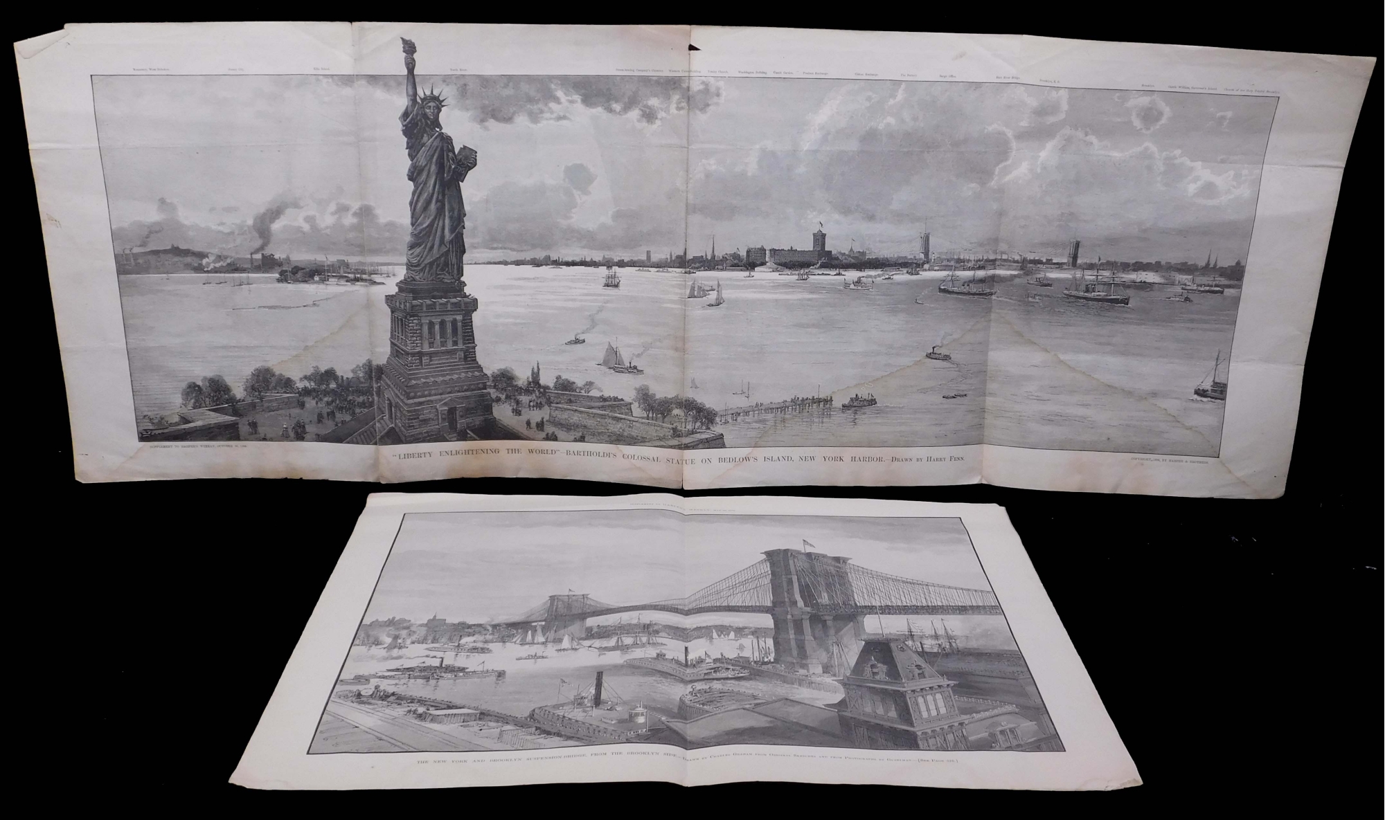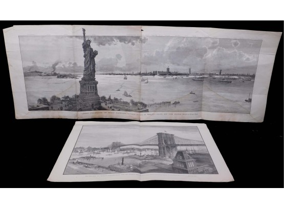 Antique New York City engravings on news printApprox 17 x 11.5 inches folded.Private Collection Boston