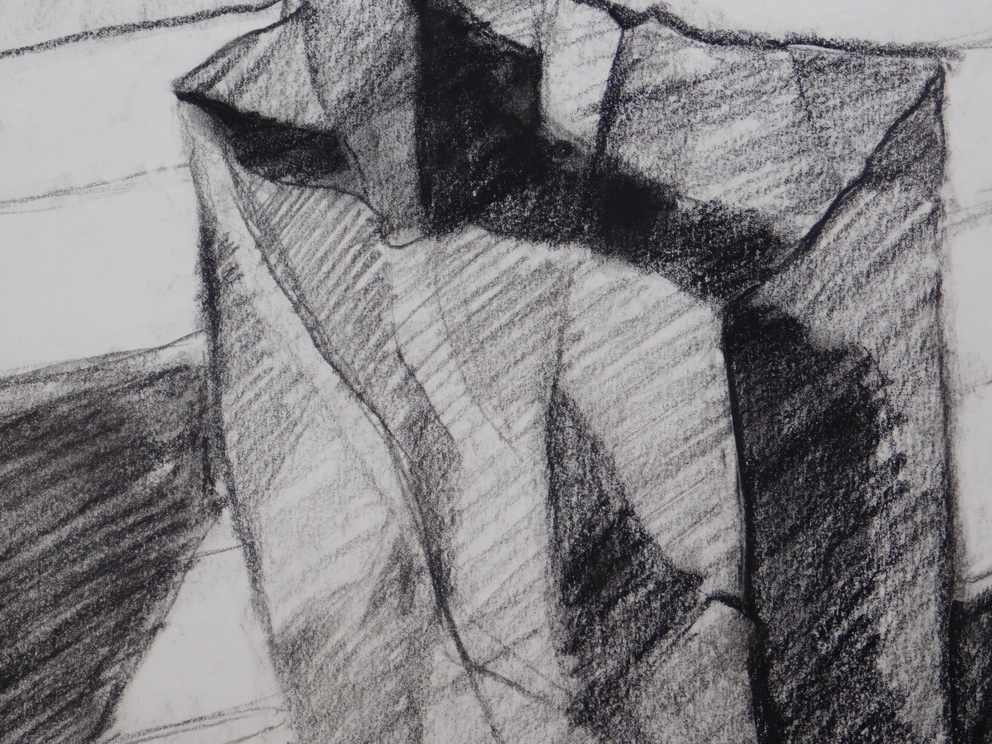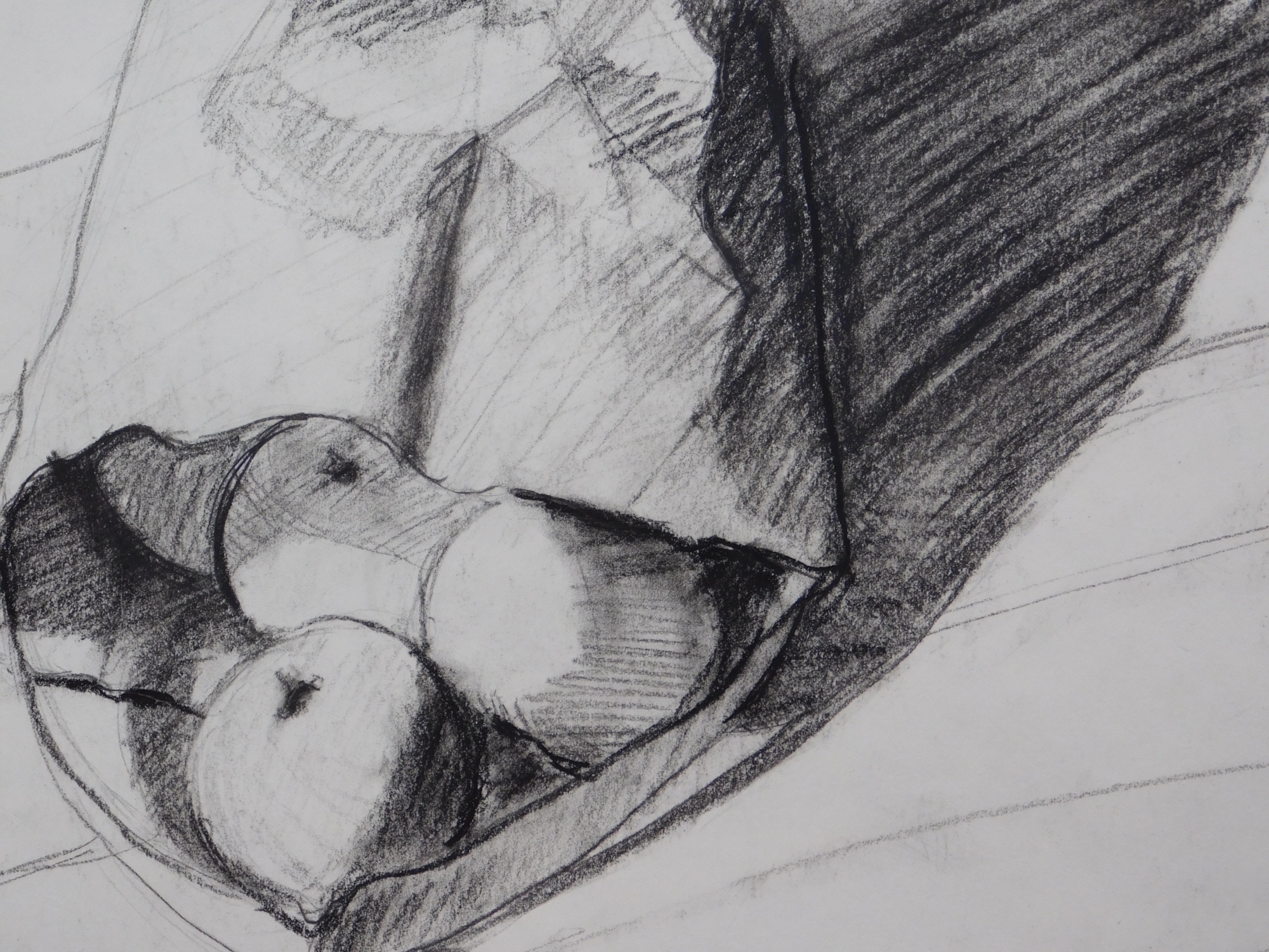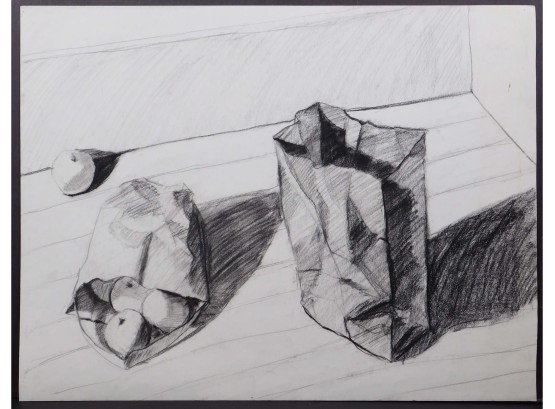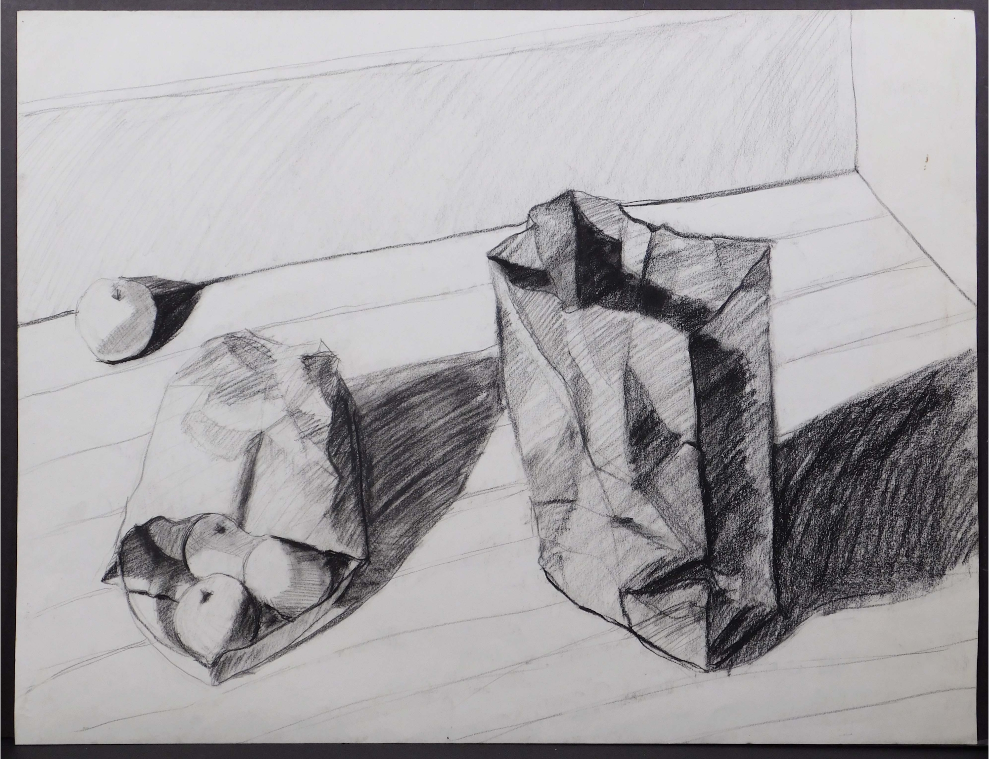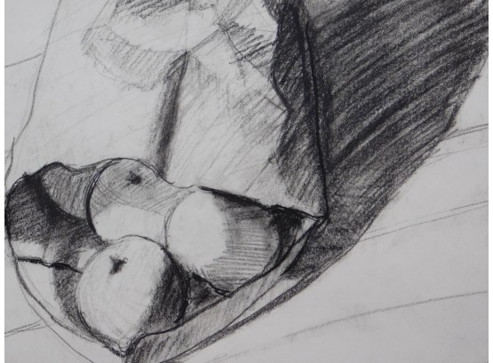 Bag of Oranges Still Life. Charcoal on paper.17.5 x 23.5 inches paper.Private collection Boston