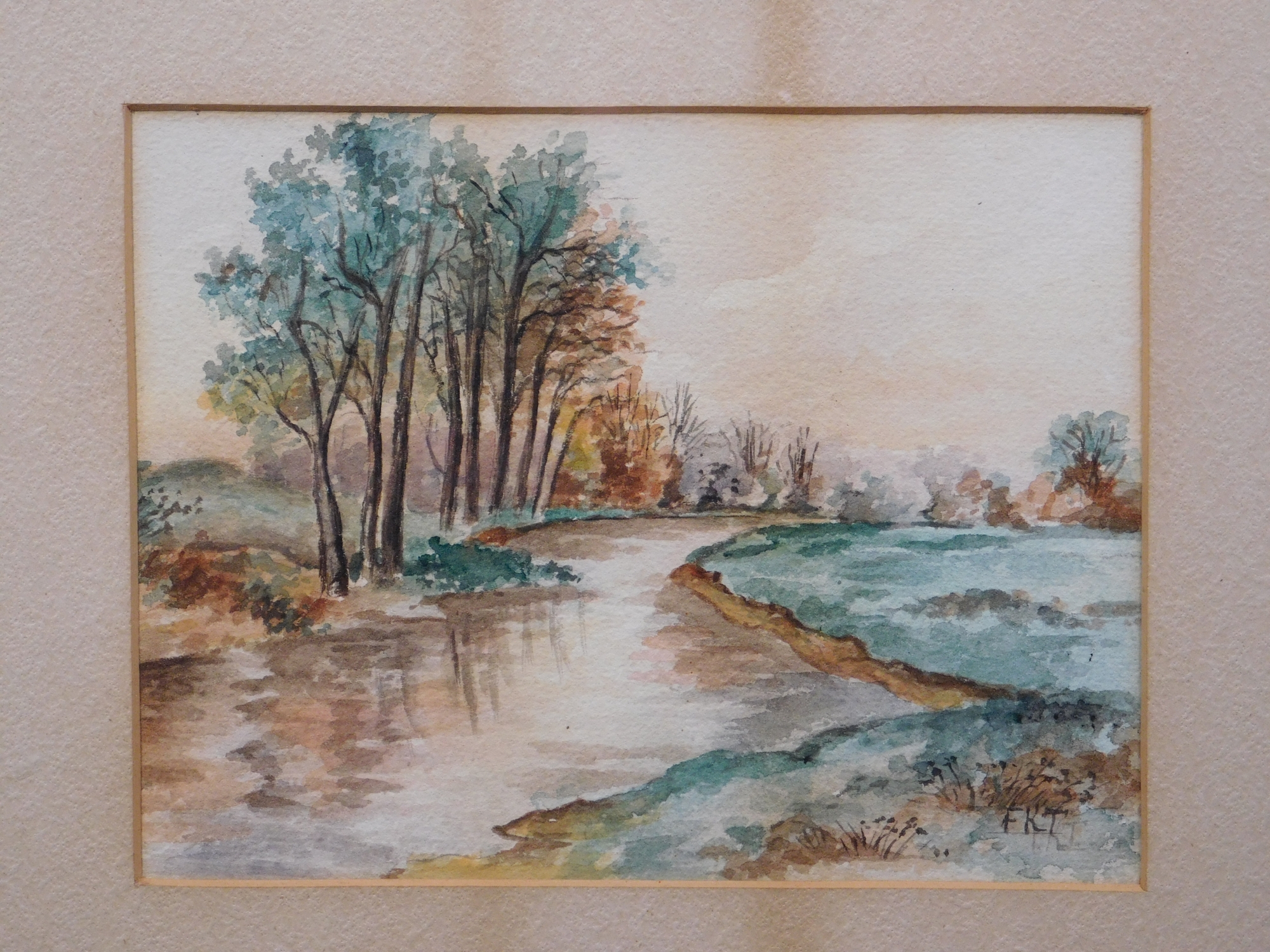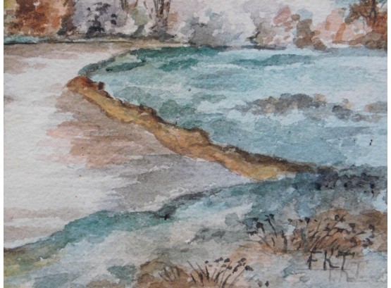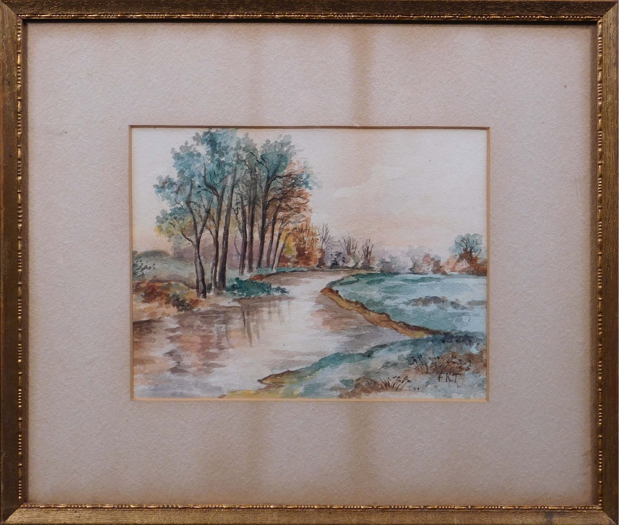 FKT (20th Century): Countryside Landscape with a River. Watercolor on cold pressed paper, framed.12 x 14 inches framed. Private collection Boston