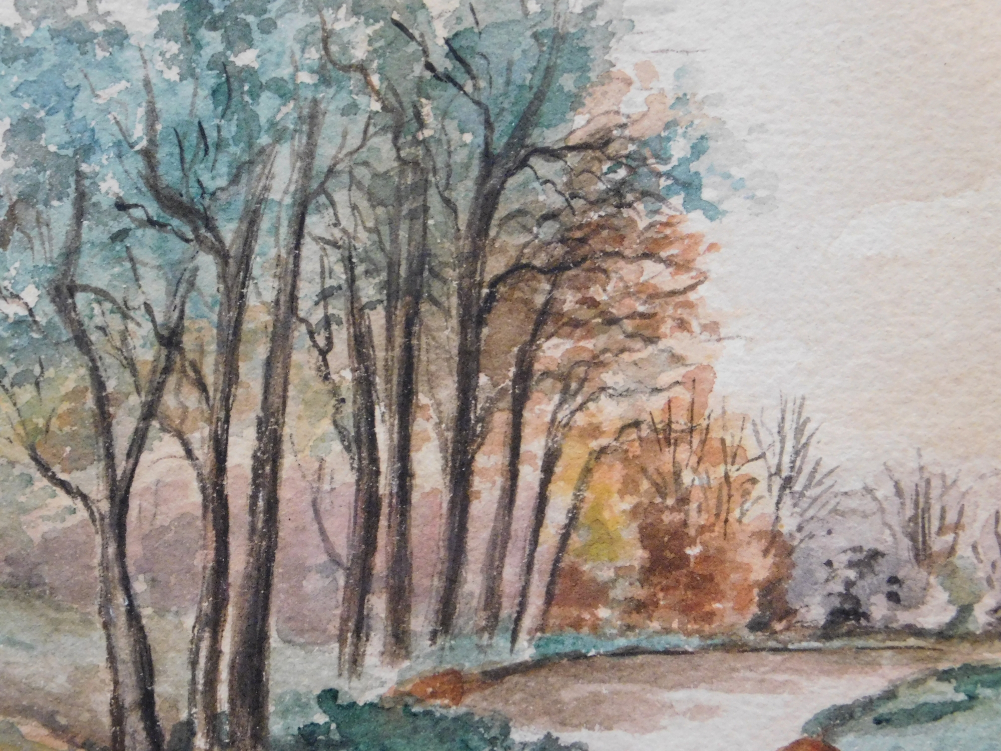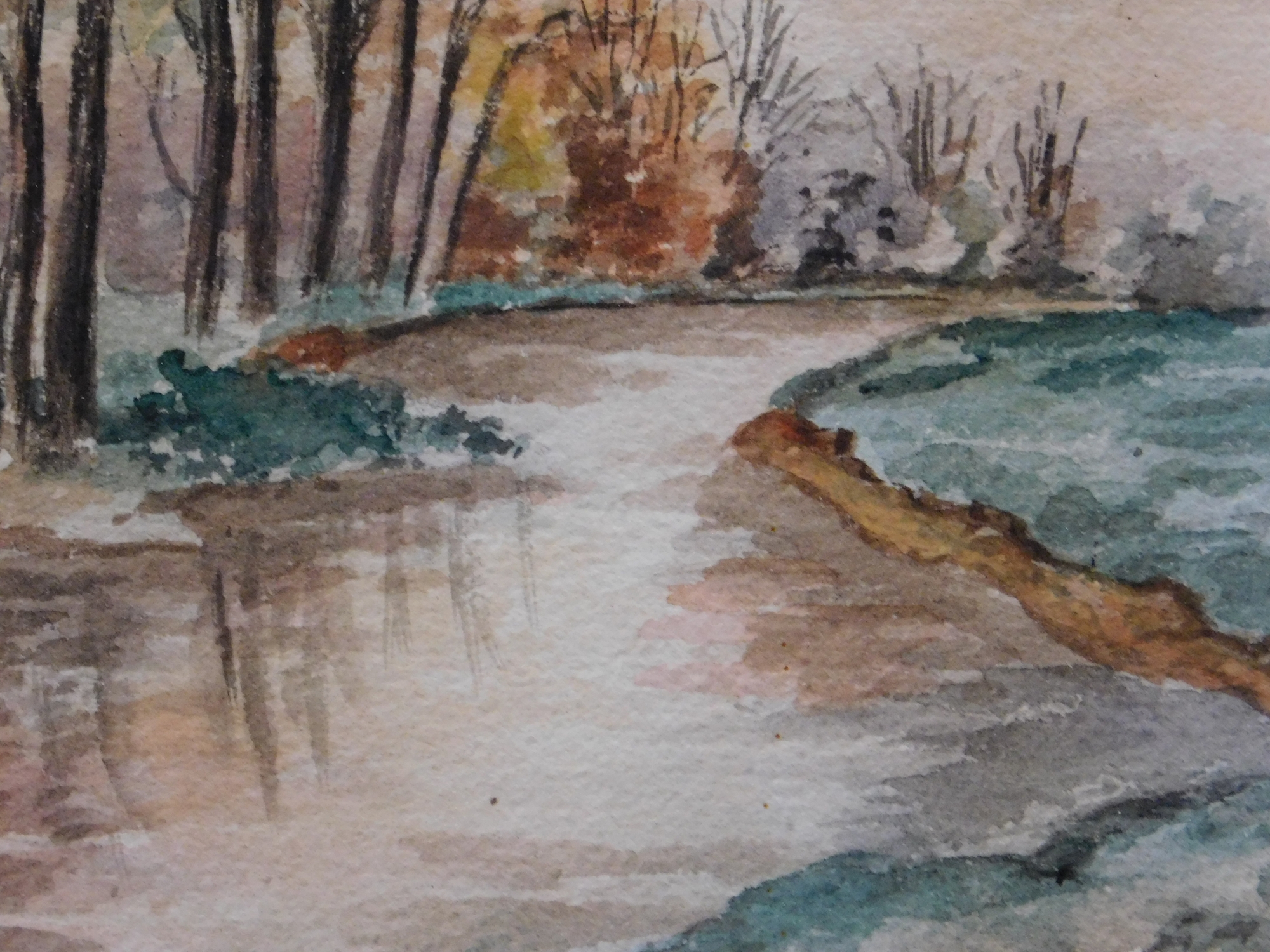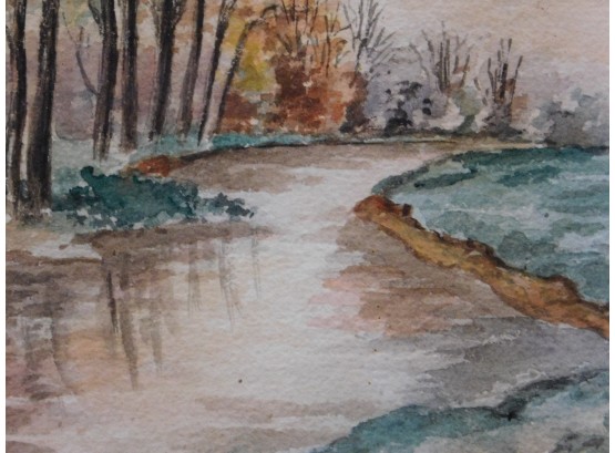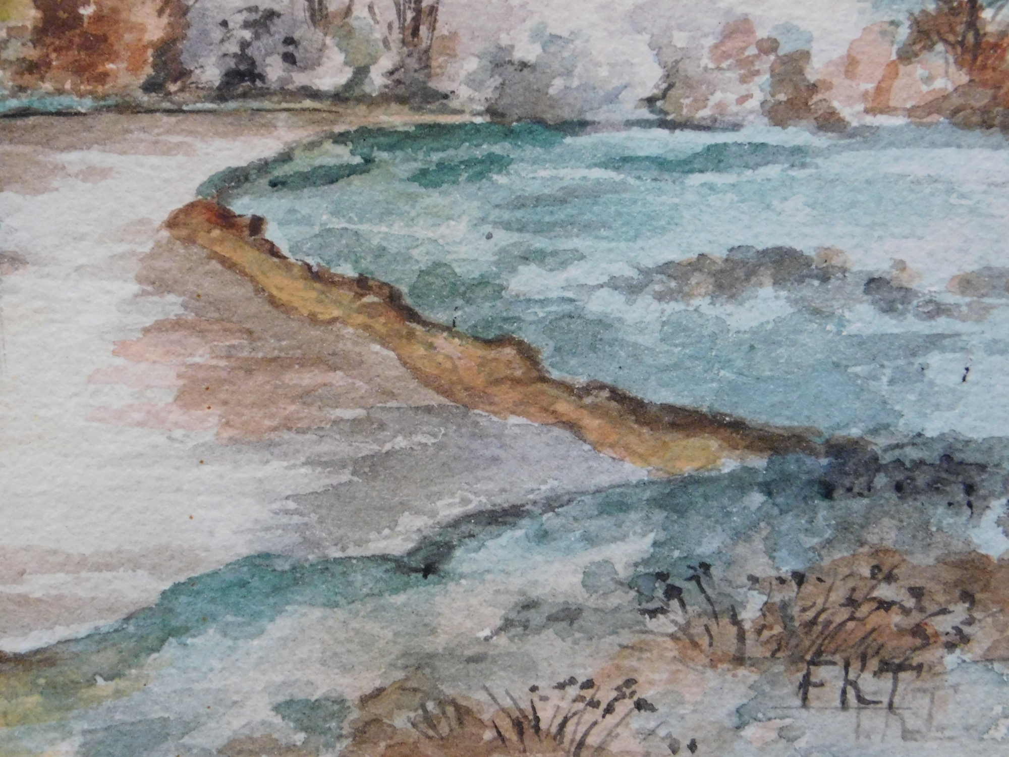 FKT (20th Century): Countryside Landscape with a River. Watercolor on cold pressed paper, framed.12 x 14 inches framed. Private collection Boston