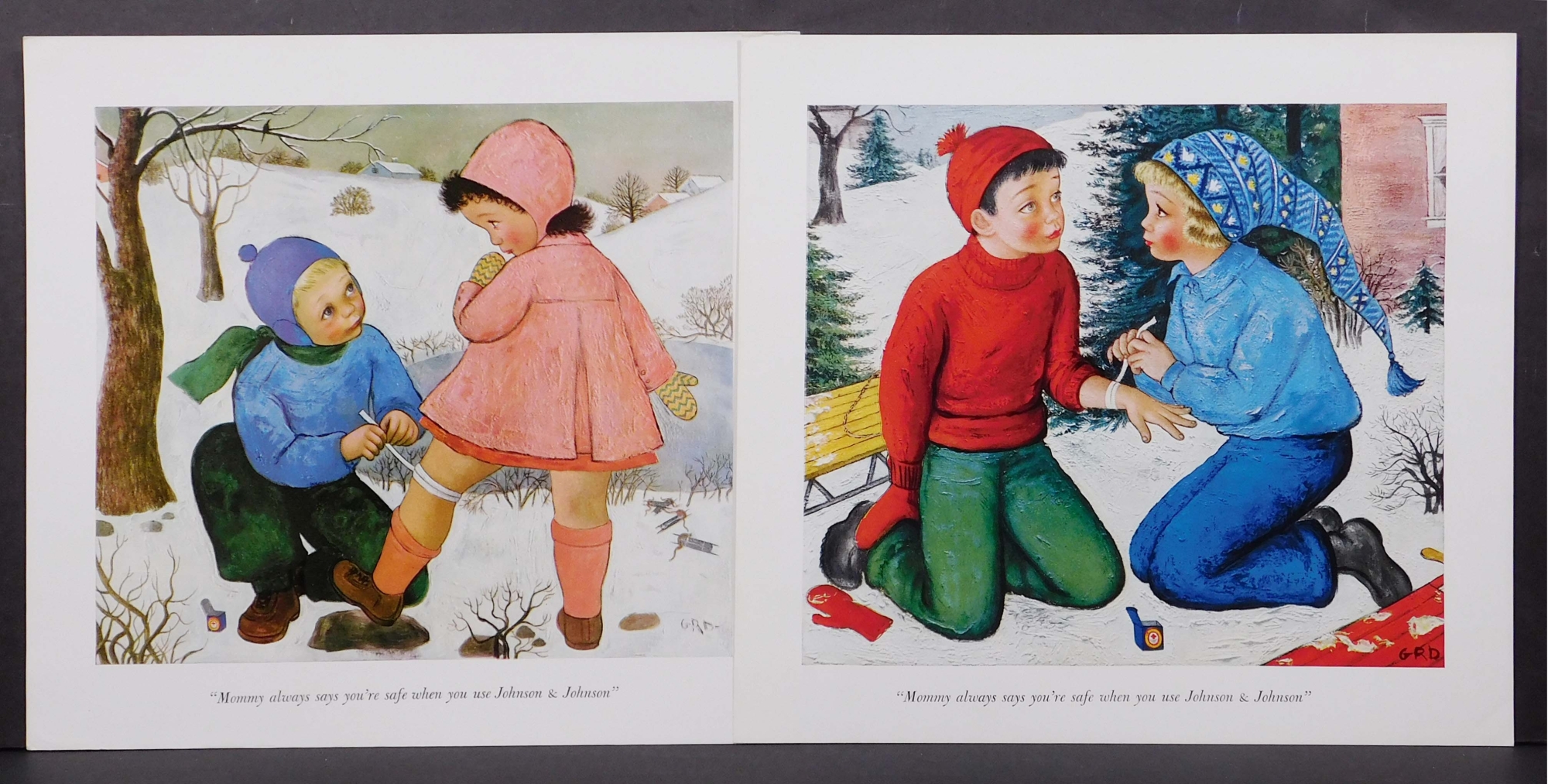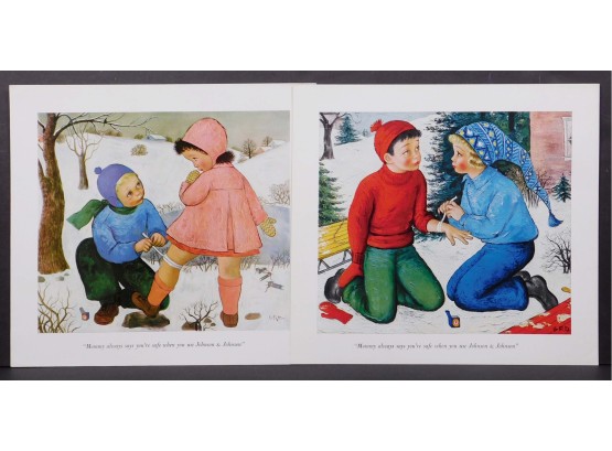 Gladys Rockmore Davis (American, 1901-1967): Two Johnson and Johnson reproductions. Gladys Rockmore Davis was an American artist who worked in both commercial and fine arts. She gave up a career in advertising art to work in creative painting. Her work in pastels ranks with her oils, and her chief subjects are children, nudes, and still lifes.10.5 x 11.25 inches with margins each.Private Collection Boston