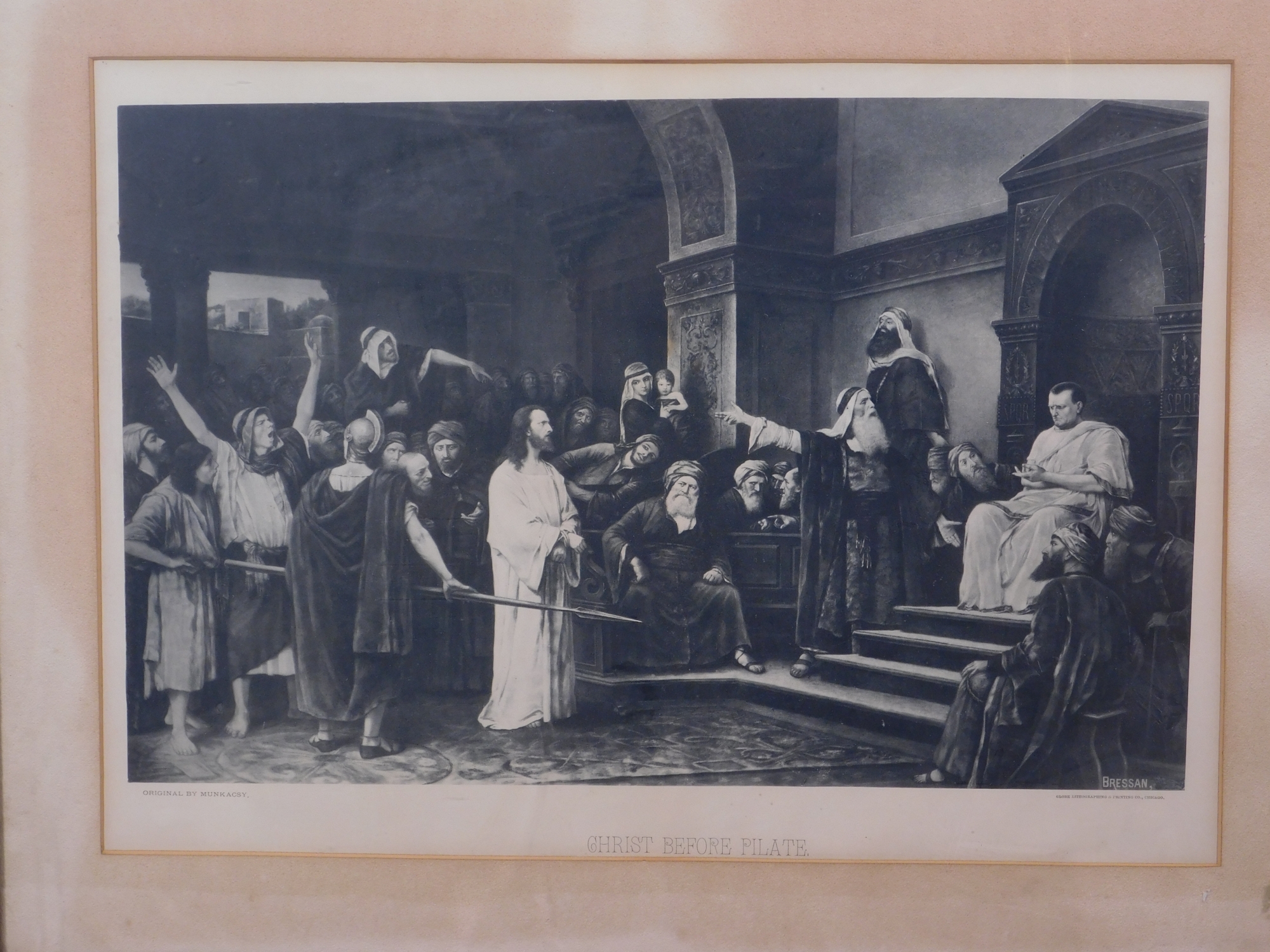 M. Munkacsy: Christ Before Pilate. Lithograph on paper, set in an impressive frame.27 x 33 inches framed.Private collection Boston