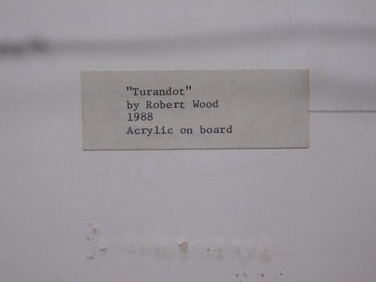 Robert Wood (American, 20th century): Turandot, 1988. Acrylic on board, set in a silver frame.12 x 10 inches framed.Private collection Boston
