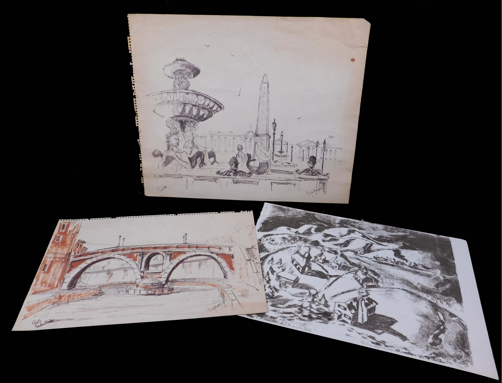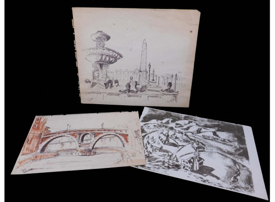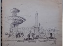 Proventil print and sketches on paper.Approx. 14 x 17 inches.Private Collection Boston