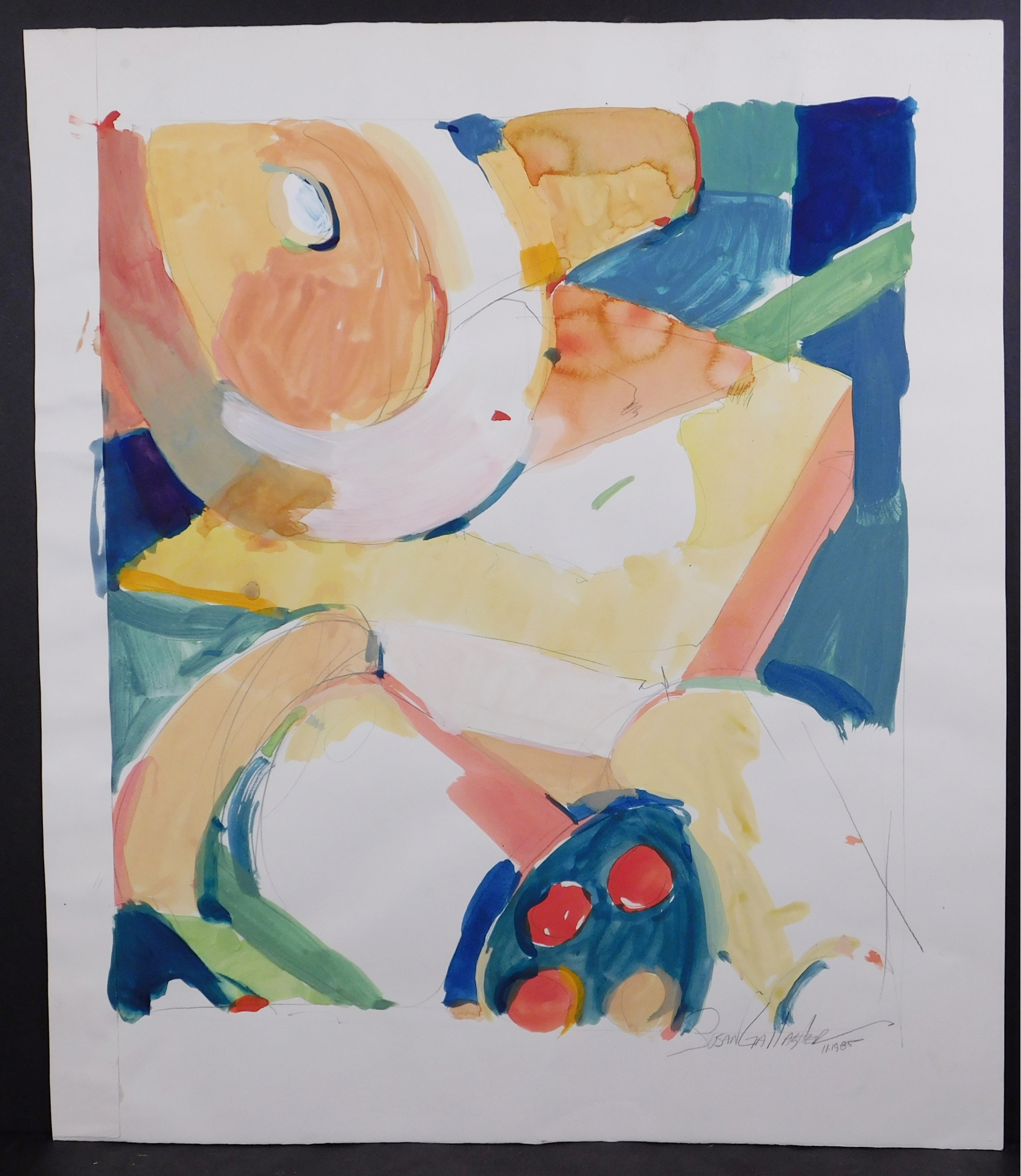Susan Gallagher (20th c. American): Abstract Still Life, 1985. Gouache on paper, signed and dated below. 22 x 19.25 inches paper.Private collection, New England, USA.
