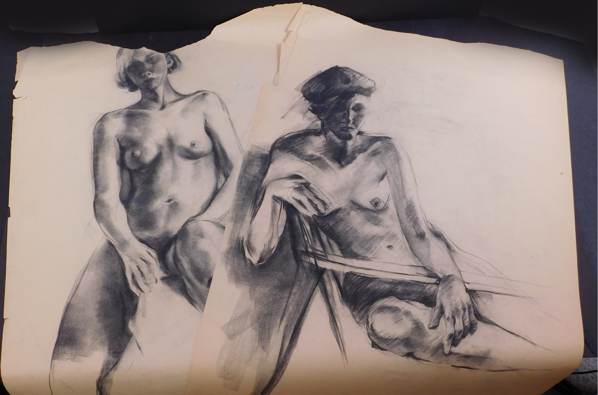 Susan Gallagher (20th c. American): Large Figure Studies. Charcoal on Sketch Paper.36 x 24 inches paper each.Private collection, New England, USA.