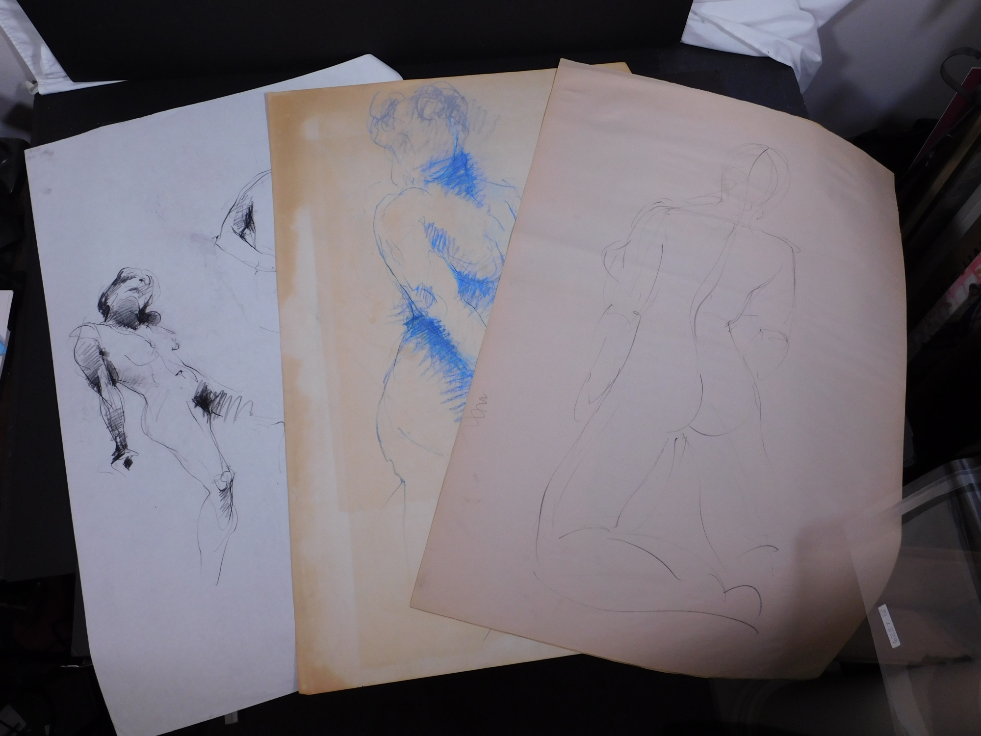 Susan Gallagher (20th c. American): Set of Large Figure Studies. Charcoal and graphite on various papers.Approx 36 x 24 inches paper each.Private collection, New England, USA.