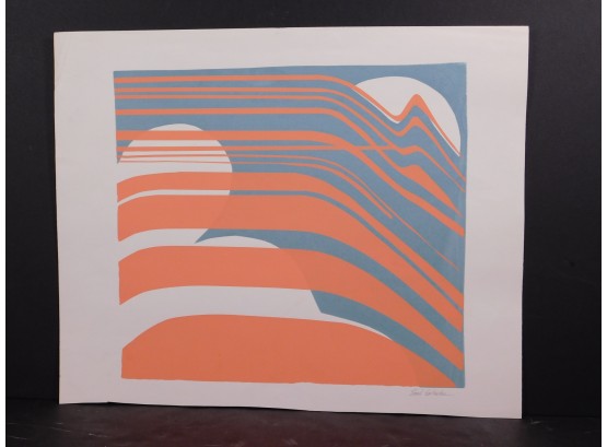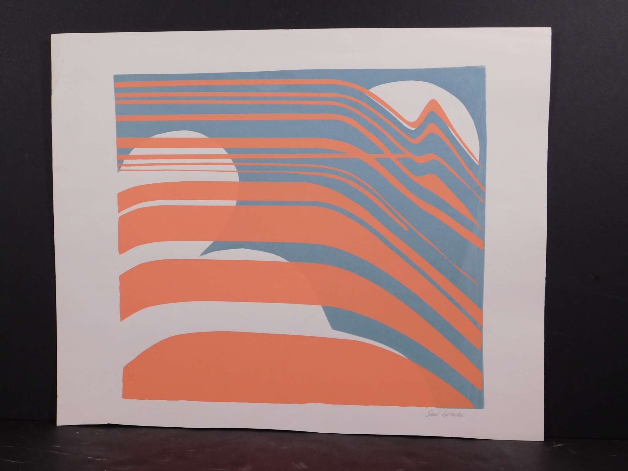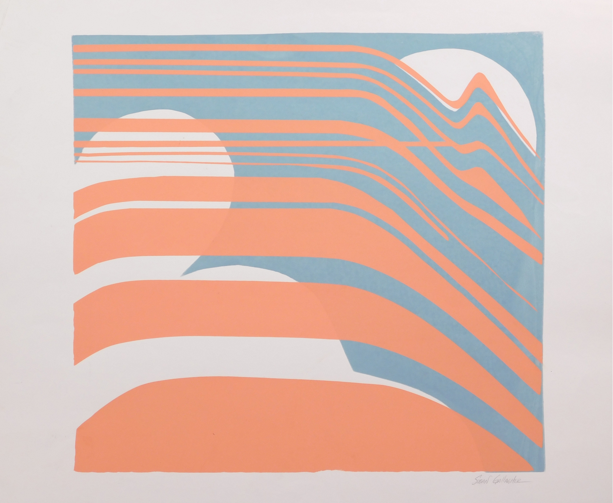 Susan Gallagher (20th c. American): Pink and Blue Horizon. Monoprint on paper, signed in pencil below. 16 x 19 inches with margins.Private collection, New England, USA.
