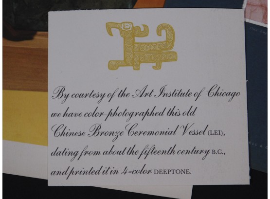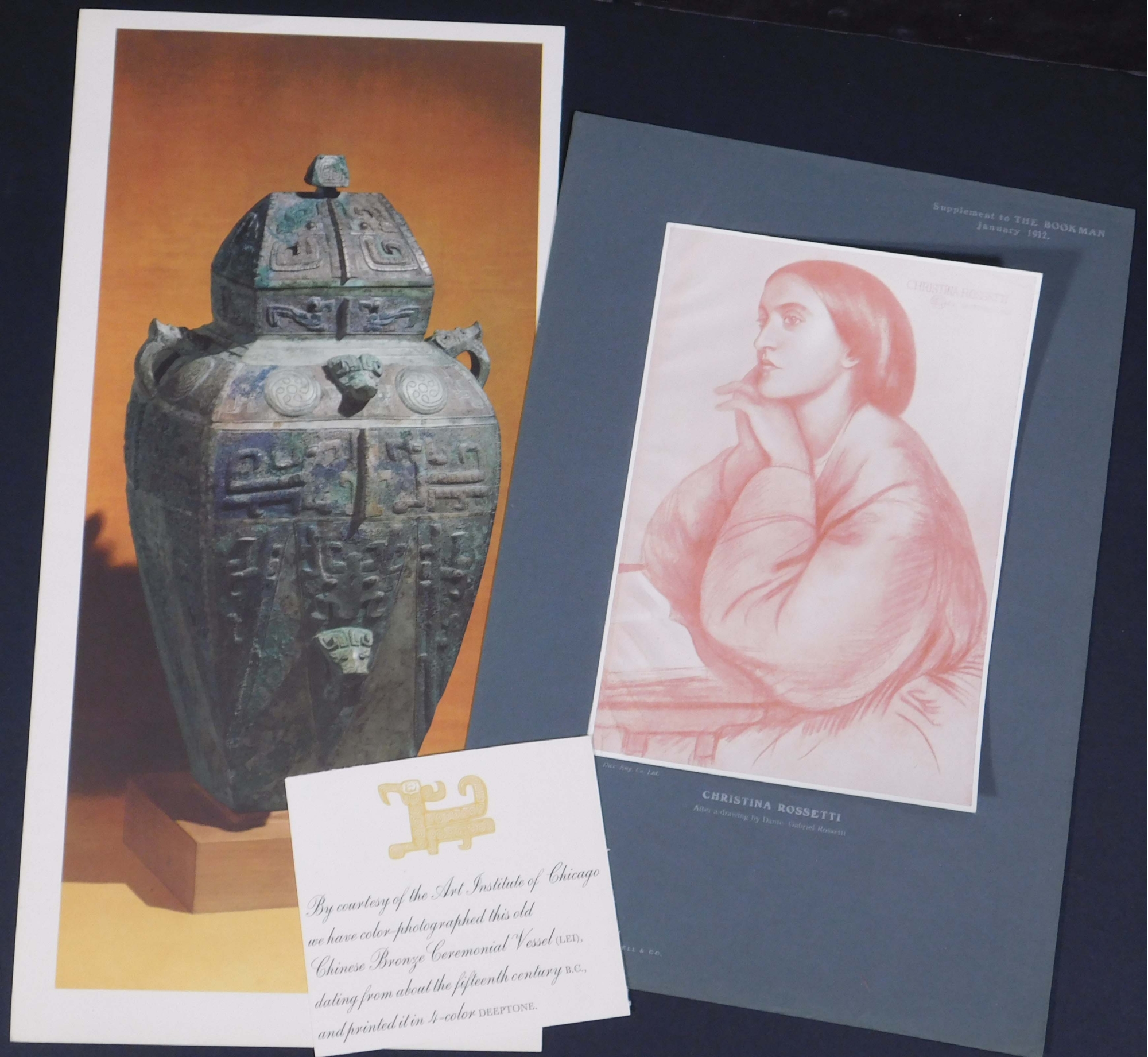 Two Museum issued offset lithographs. Featuring a sketch by Christina Rossetti and a Chinese Bronze ceremonial vessel.Approx. 15 x 9 inches each.Private collection Boston