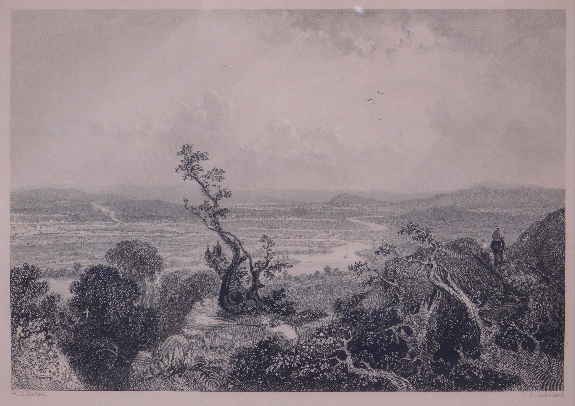 WH Bartett (British, 1809-1854): Valley of The Connecticut (From Mount Holyhock), 1838. Antique engraving set in a black and gold frame. William Henry Bartlett was a British artist, best known for his numerous drawings rendered into steel engravings.11.5 x 13 inches framed.Private collection Boston