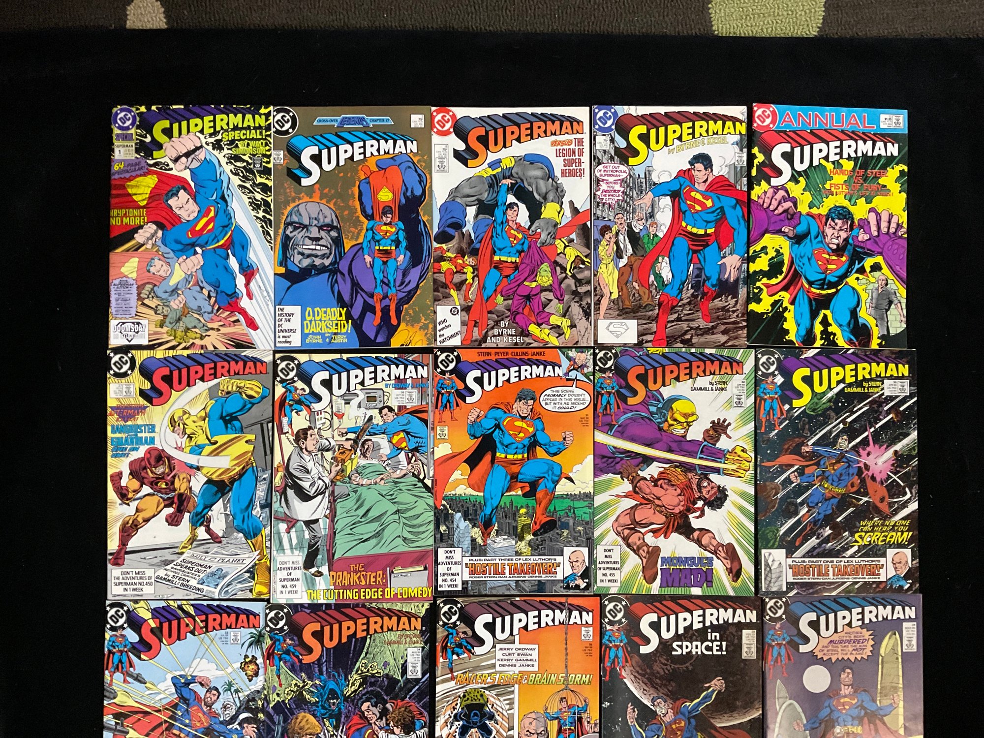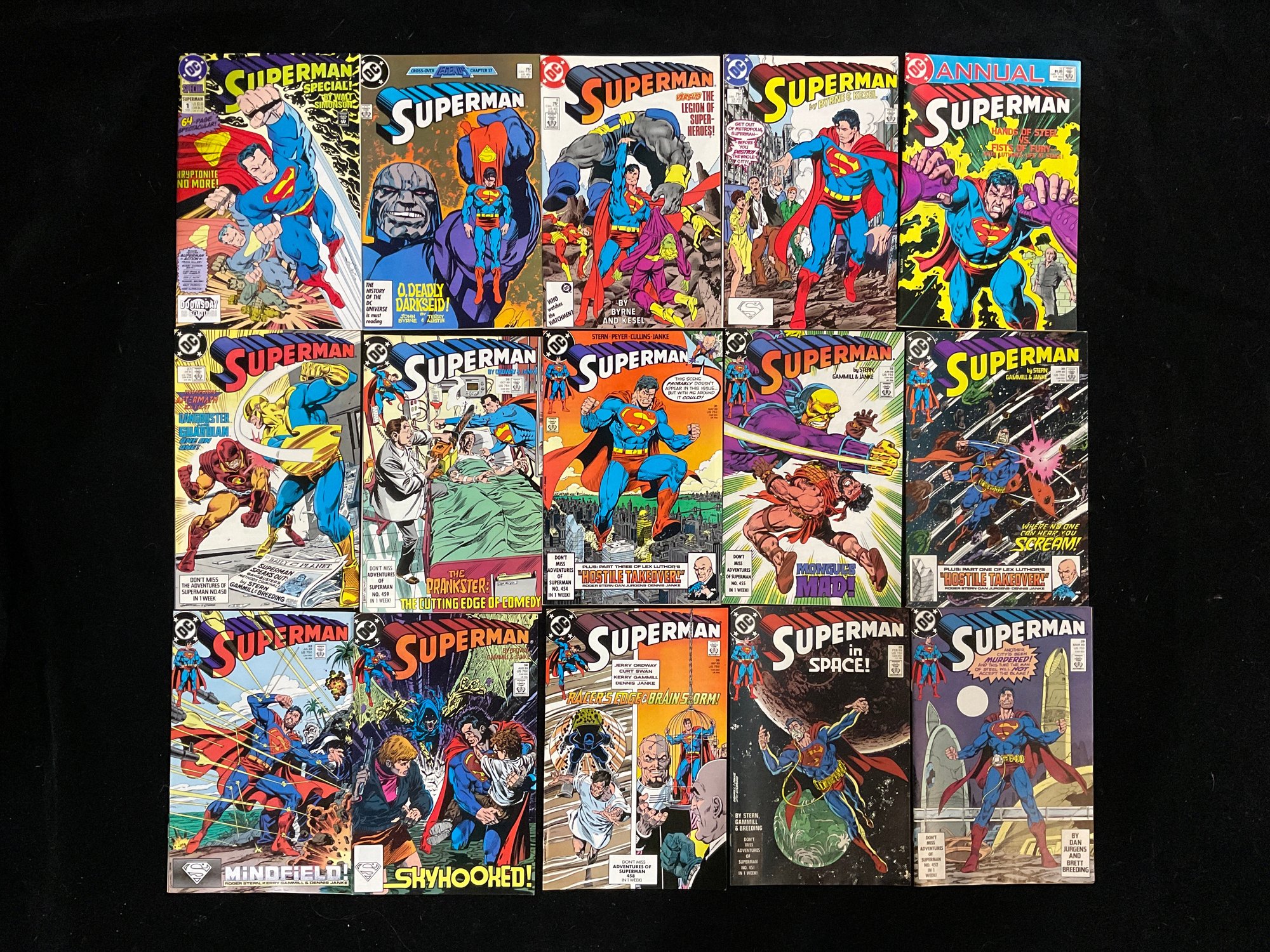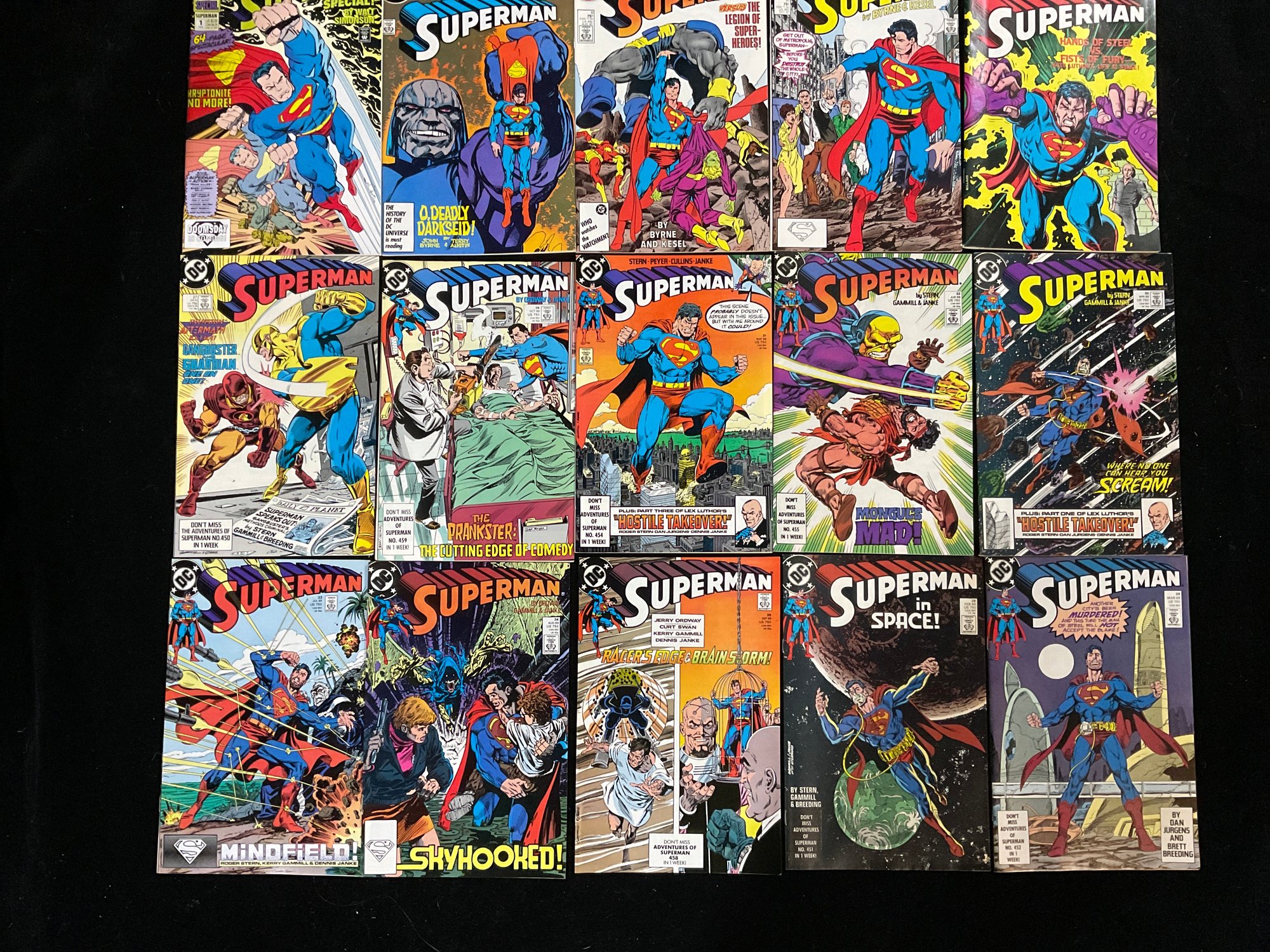Superman #1 (1987): The top-left comic is the first issue of the 1987 relaunch.