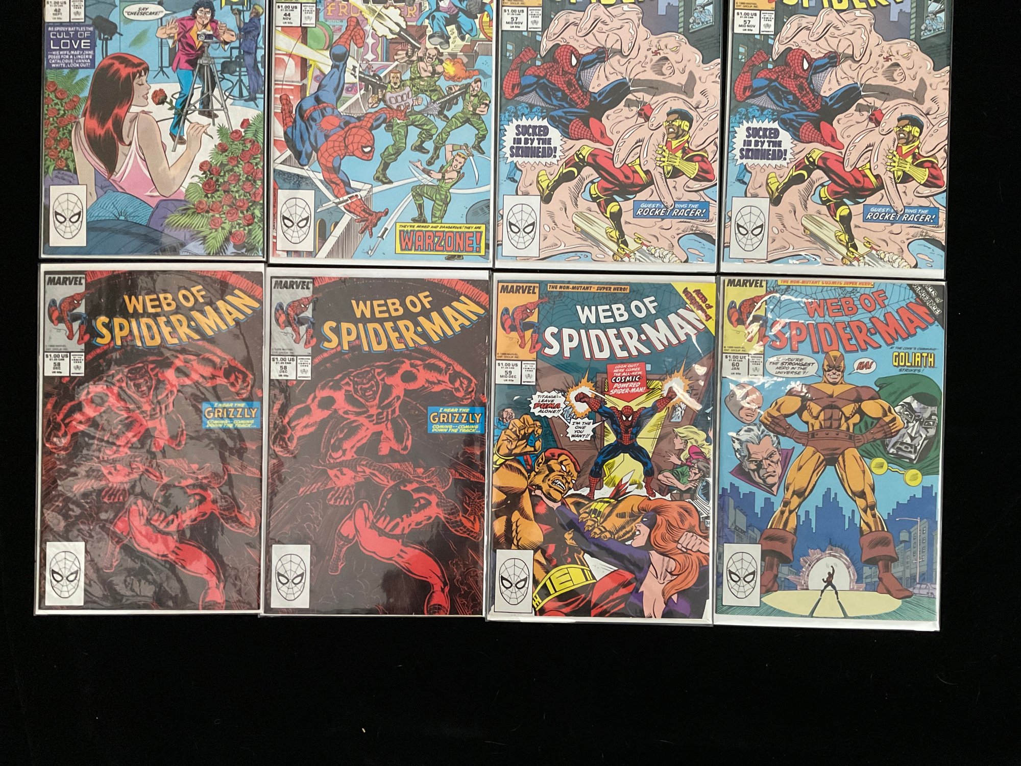 Web of Spider-Man #42 (Sept 1988): Features a cover with Mary Jane Watson and Peter Parker.