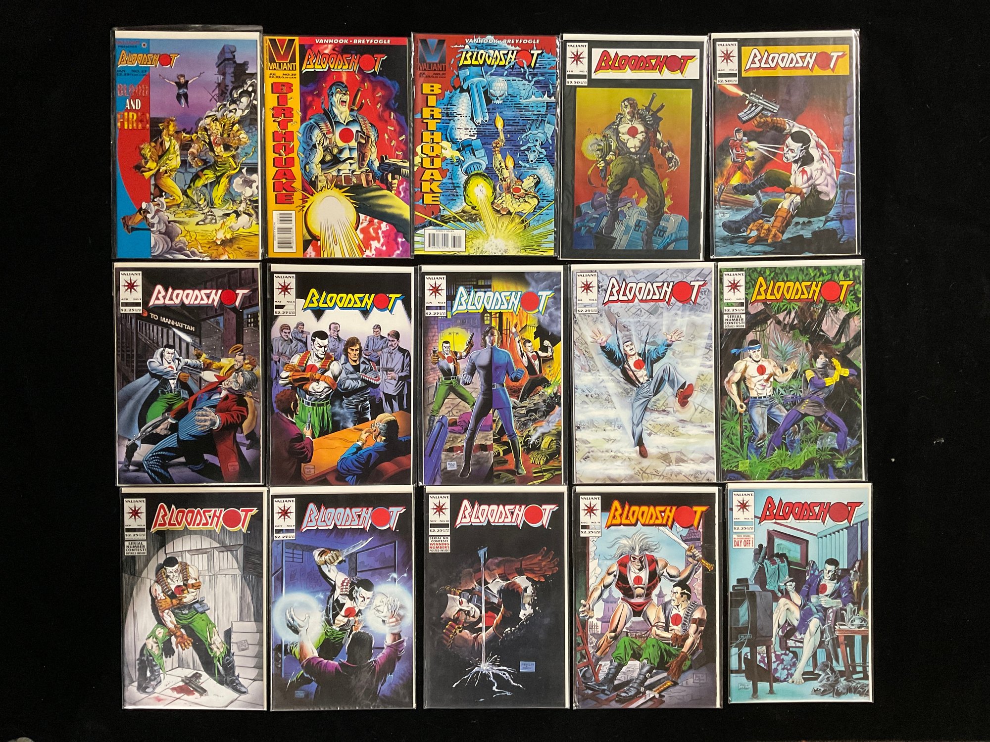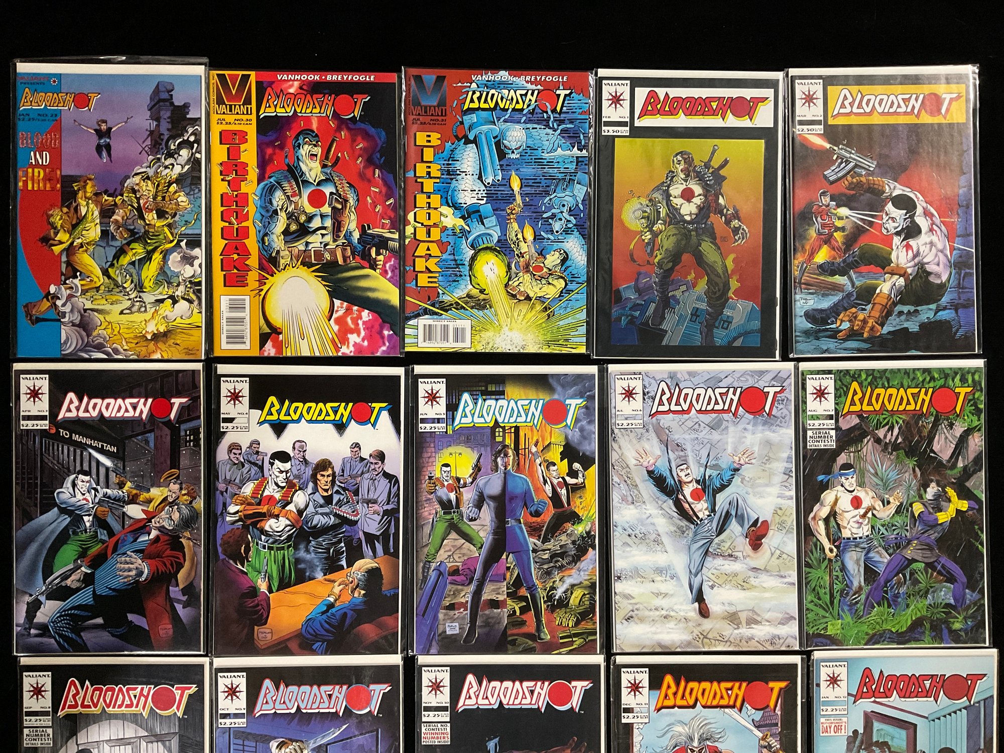 Far Left: Bloodshot #23 (January 1995), titled "Blood and Fire!".