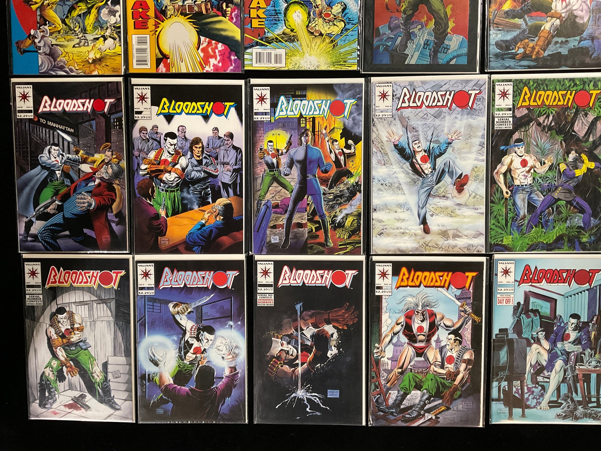 Second from Right: Bloodshot #1 (February 1993), the premiere issue of the series featuring a chromium cover by Barry Windsor-Smith.