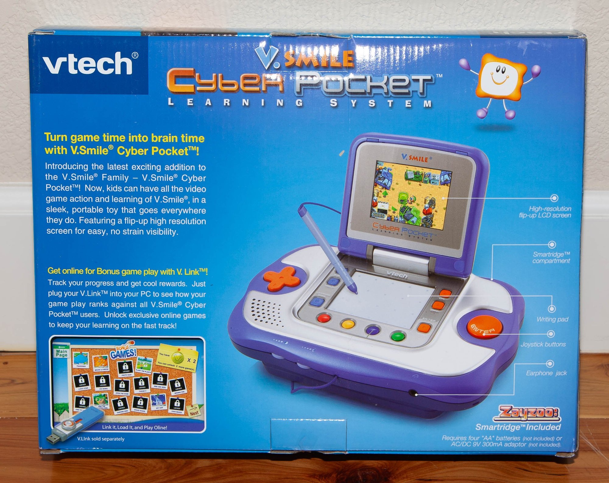 Connectivity: It includes a port for the V-Link accessory, which allowed players to track progress online and unlock bonus games on a secure website.