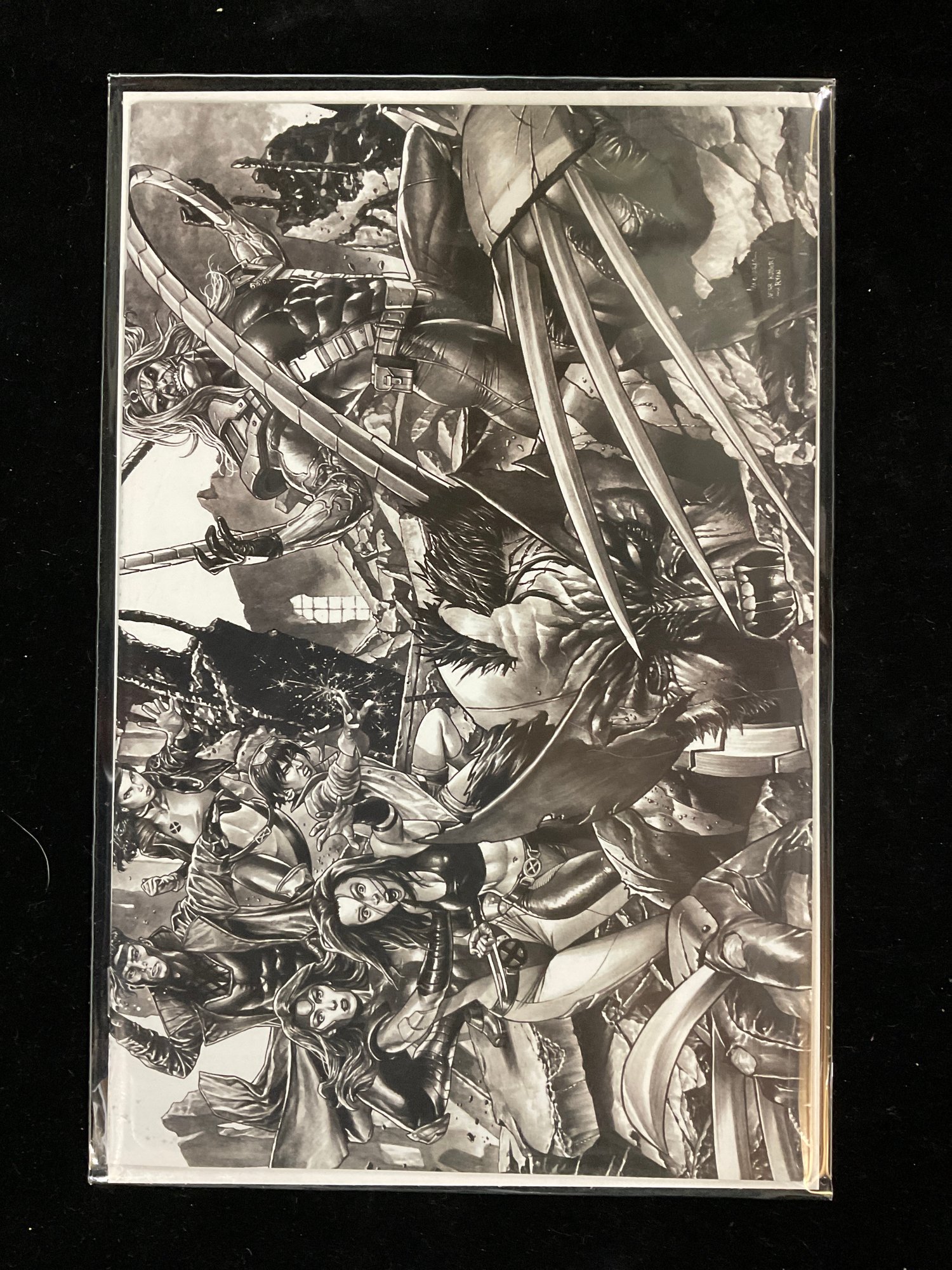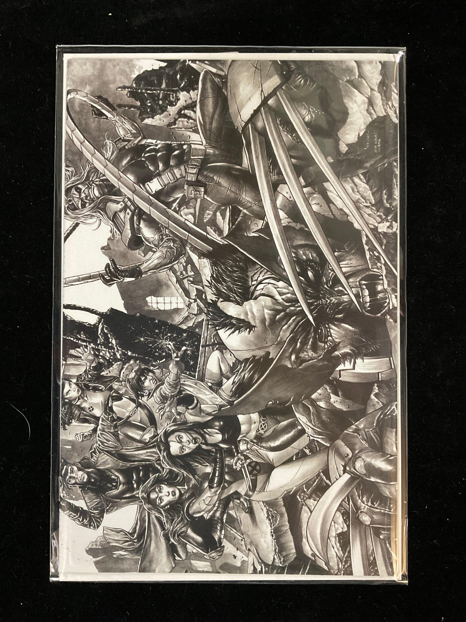 Characters Shown: The intricate artwork features Wolverine (Logan) prominently in the foreground with his claws extended, surrounded by other X-Men and characters like Dracula, tying into the "Blood Clocks" story arc