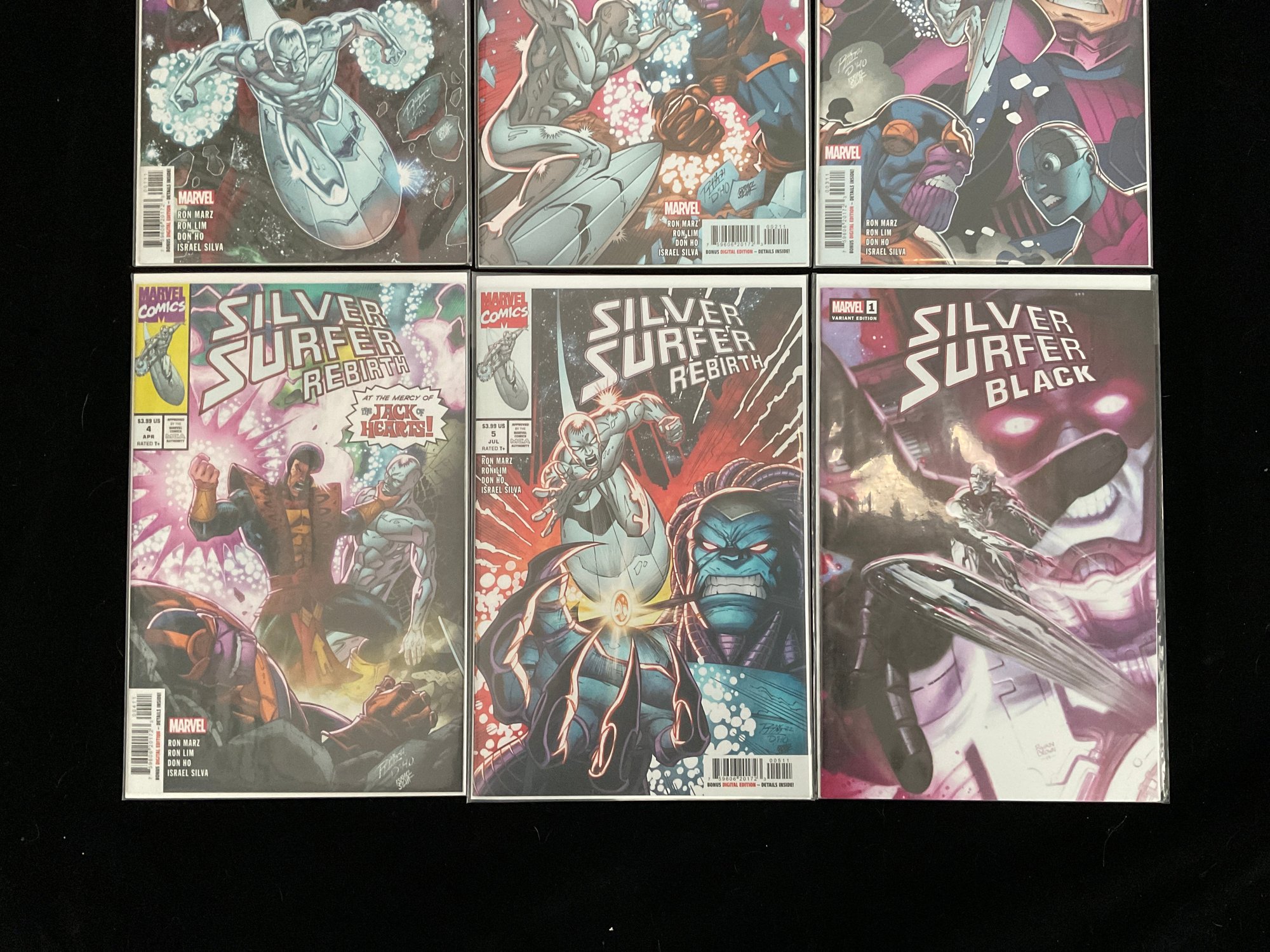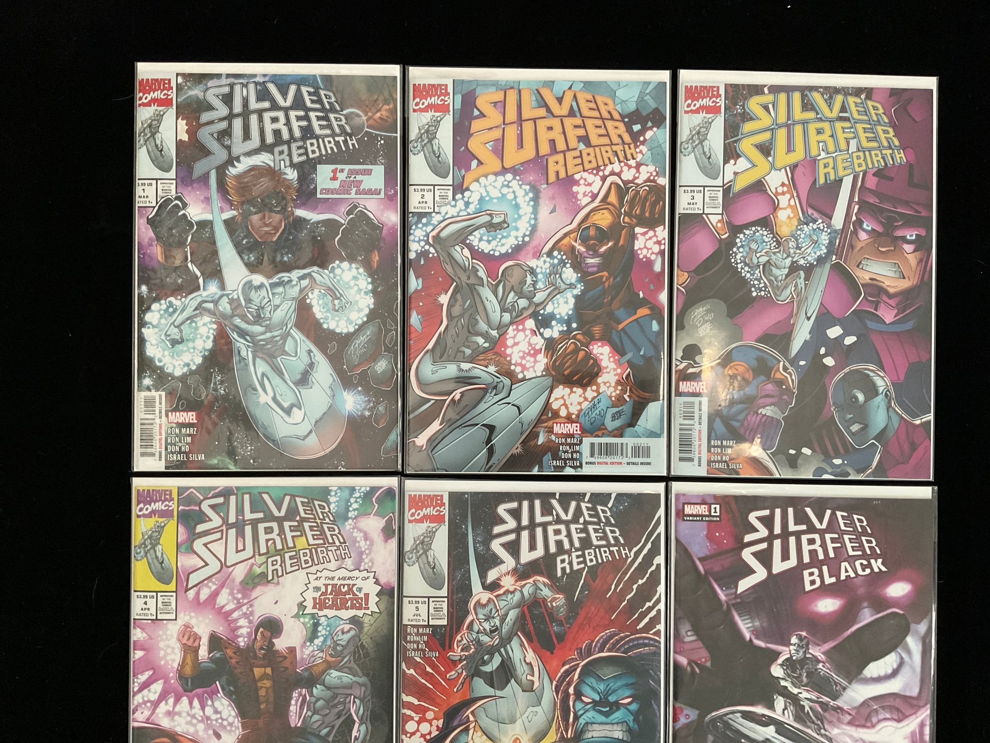 Silver Surfer: Rebirth (Issues 1-5): This 2022 series was created by the legendary 1990s duo of writer Ron Marz and artist Ron Lim. The story follows the Silver Surfer and Thanos as they investigate the theft of the Reality Gem, which someone is using to restructure the universe and even bring back the dead hero Captain Mar-Vell.