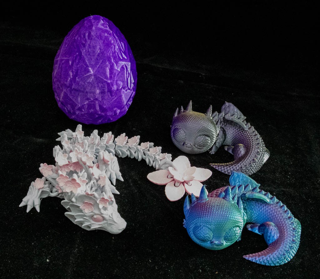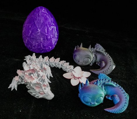 Sleeping Baby Dragons: The two smaller, curled figures are "Sleeping Baby Dragons." They are often sold as part of mystery packs or printed from popular STL models like those by 3DJPDESIGNS.