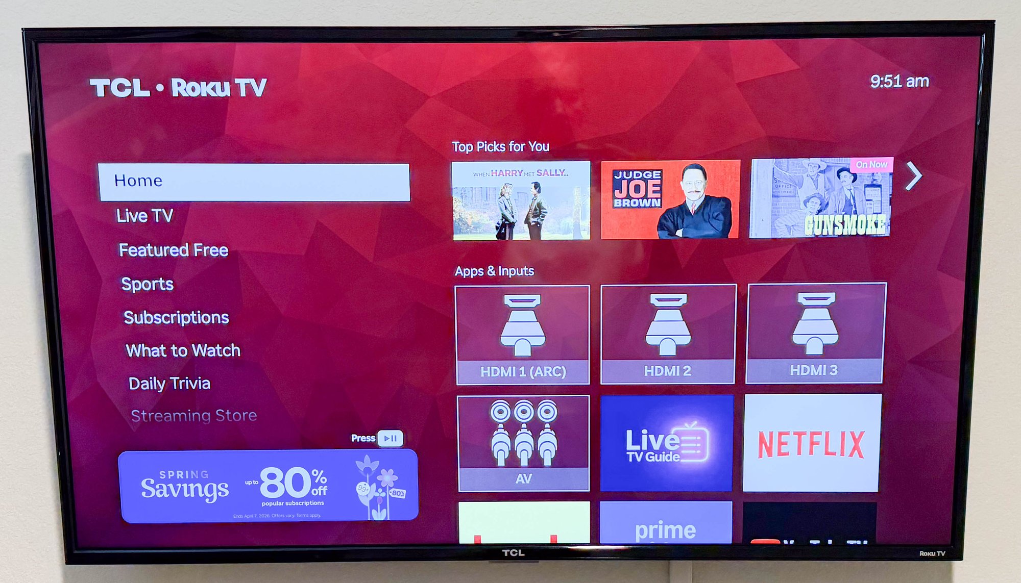 Class 4K UHD Smart TV with built-in Roku functionality. This model is part of the S405 series, an entry-level 4K TV line from TCL.