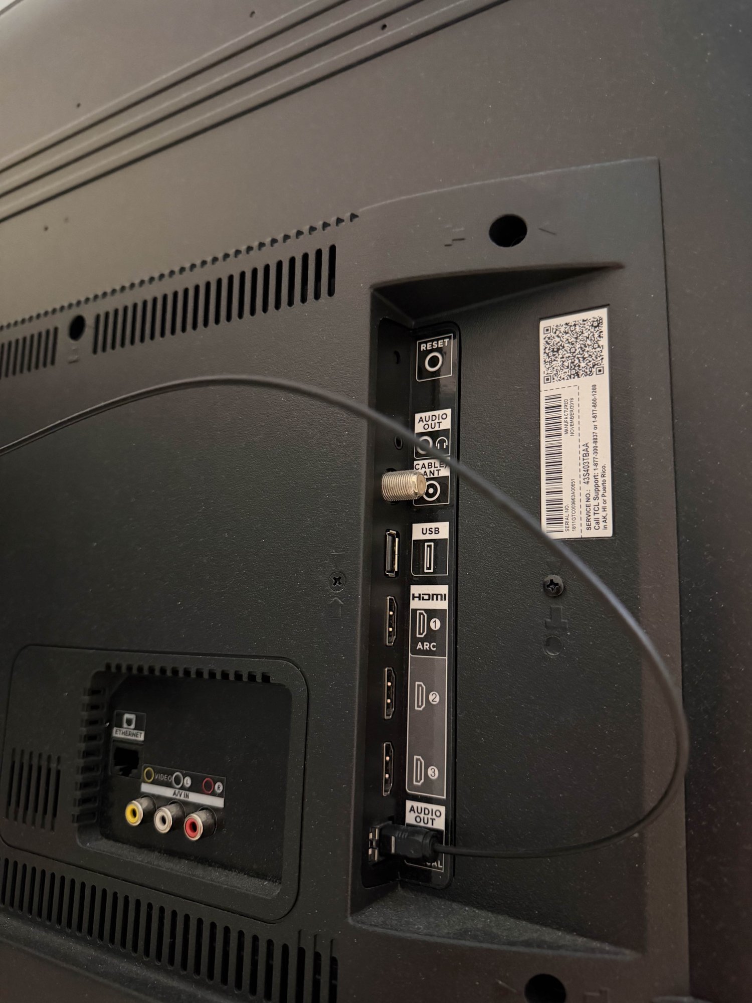 Remote Control: The TV comes with a standard remote control, often an RC280 model or similar, which typically features dedicated shortcut buttons for popular streaming services like Netflix, Hulu, and Vudu.