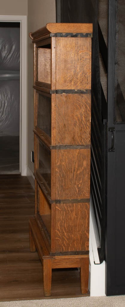 Design: This is a four-stack model made of oak (often quarter-sawn) with an Arts & Crafts or Mission style influence.