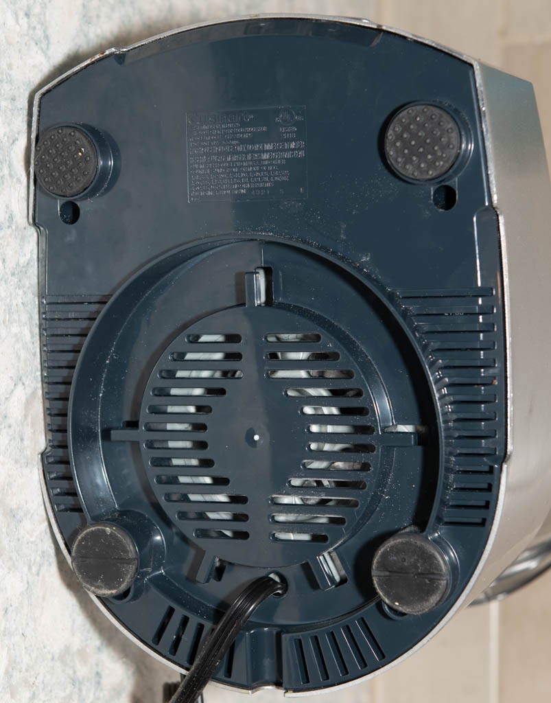 Controls: Simple electronic touchpad with "On," "Off," and "Pulse" buttons highlighted by blue LED lights.
