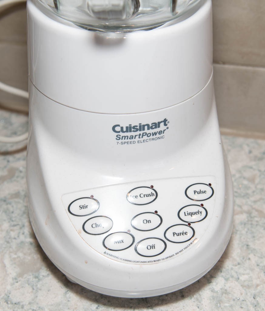 Controls: 7-speed touchpad with indicator lights for functions including stir, chop, mix, liquefy, purée, and a dedicated ice crush button.