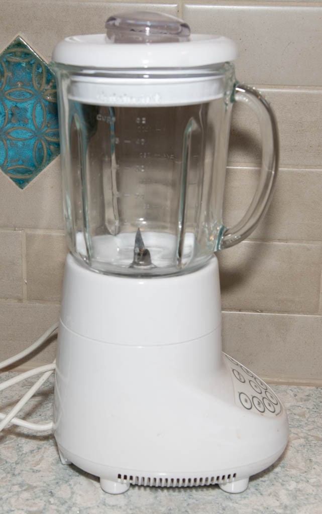 Design: Features a white base with a removable 2-oz lid for adding ingredients during use