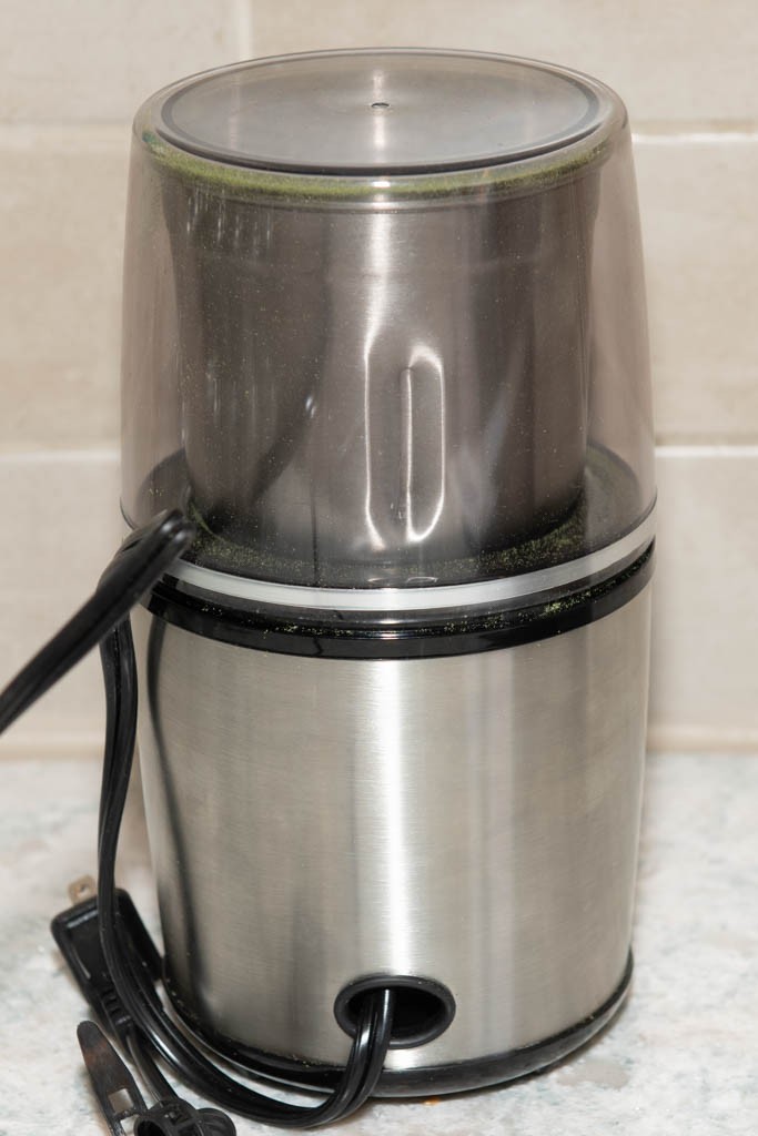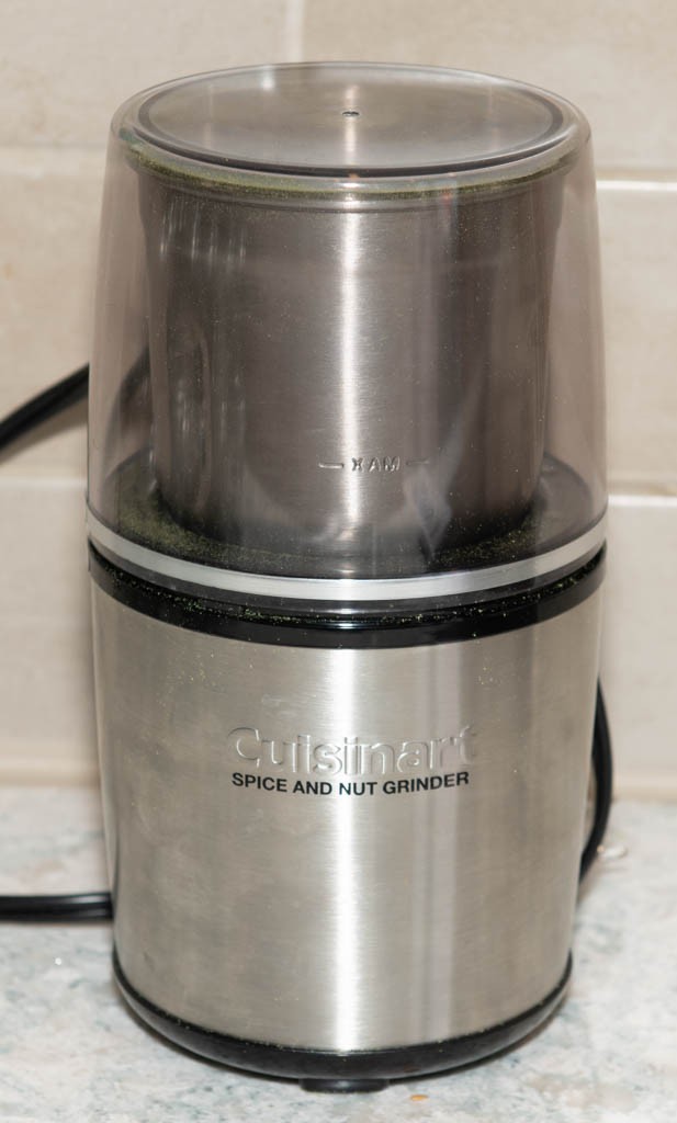Capacity: 90-gram (approx. 3 oz) stainless steel grinding bowl.