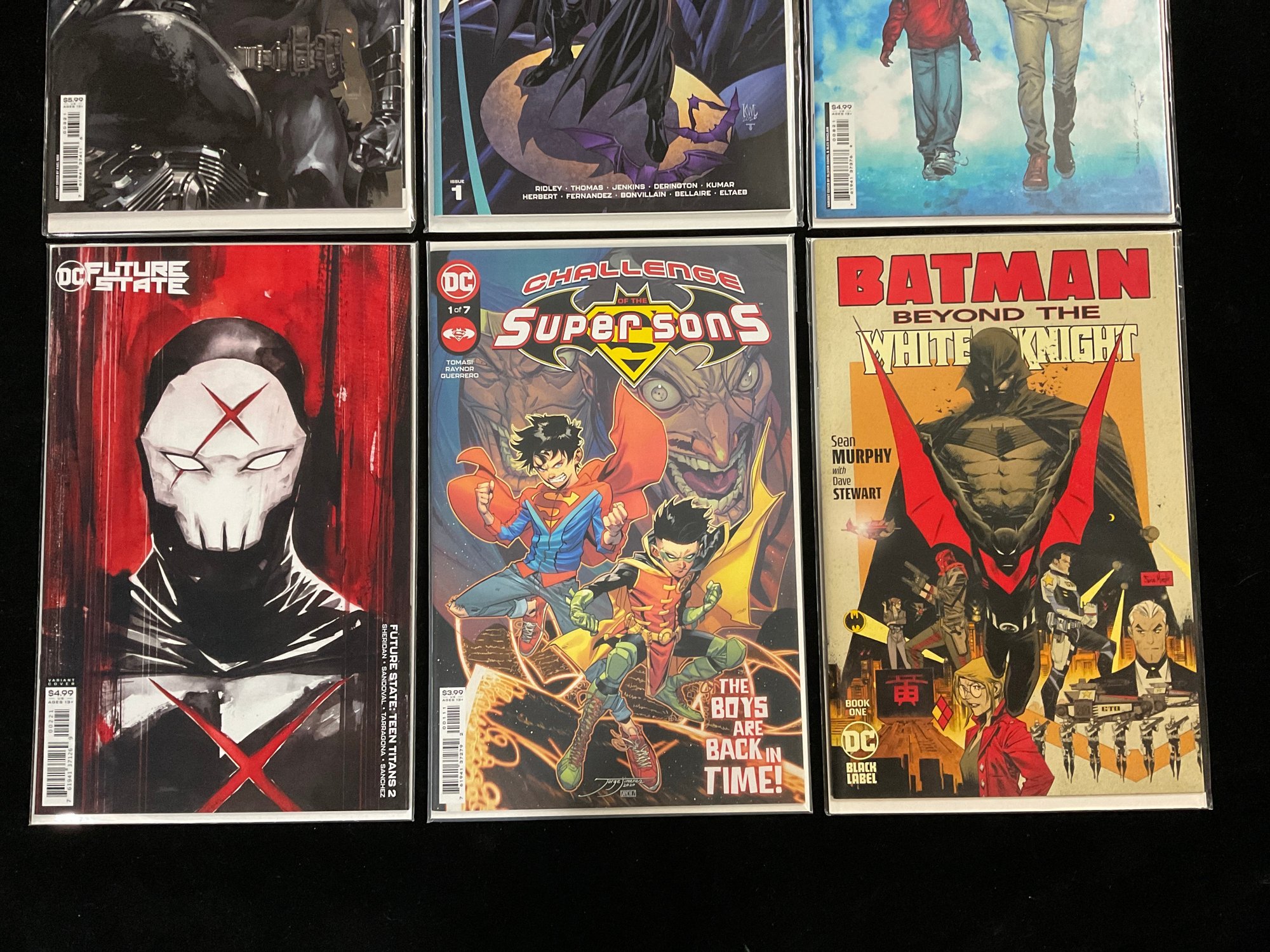Top Center: Future State: The Next Batman #1 (Variant Cover) – This key issue marks the first full appearance of Tim "Jace" Fox (the son of Lucius Fox) as Batman. The cover art for this variant is by Ken Lashley.