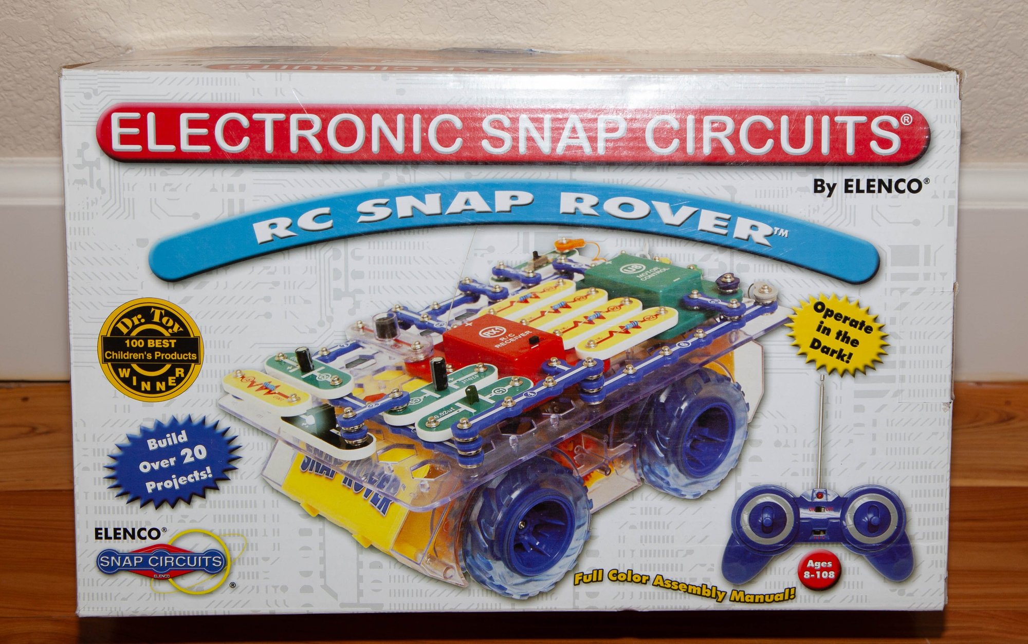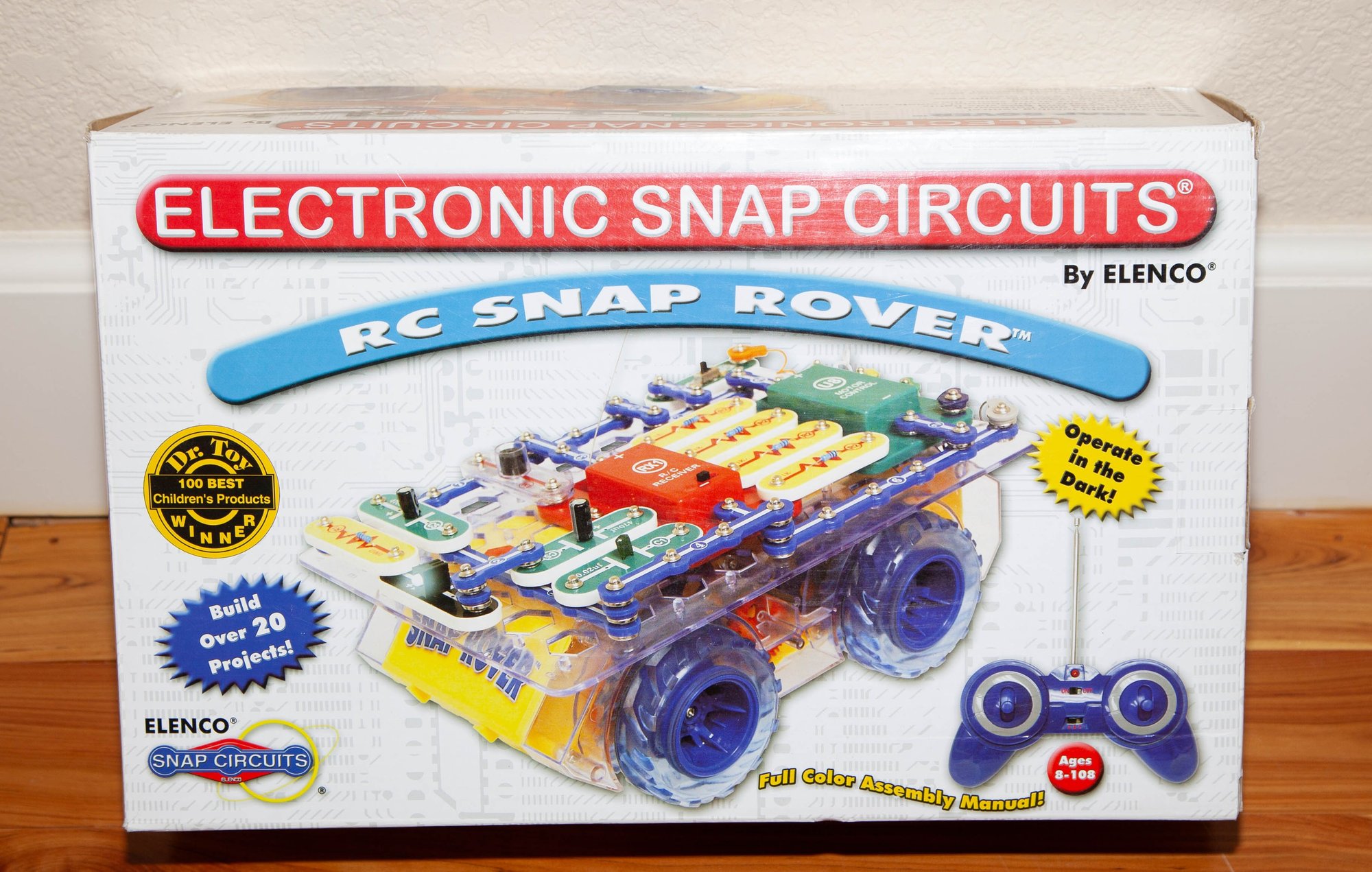 The kit includes over 30 snap-together components to create circuits for motion, lights, and sound.