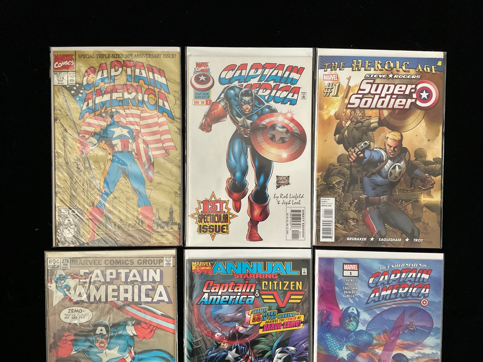 Top Middle Captain America Vol. 2 #1 (1996) Part of the "Heroes Reborn" era, written by Jeph Loeb with art and cover by Rob Liefeld.