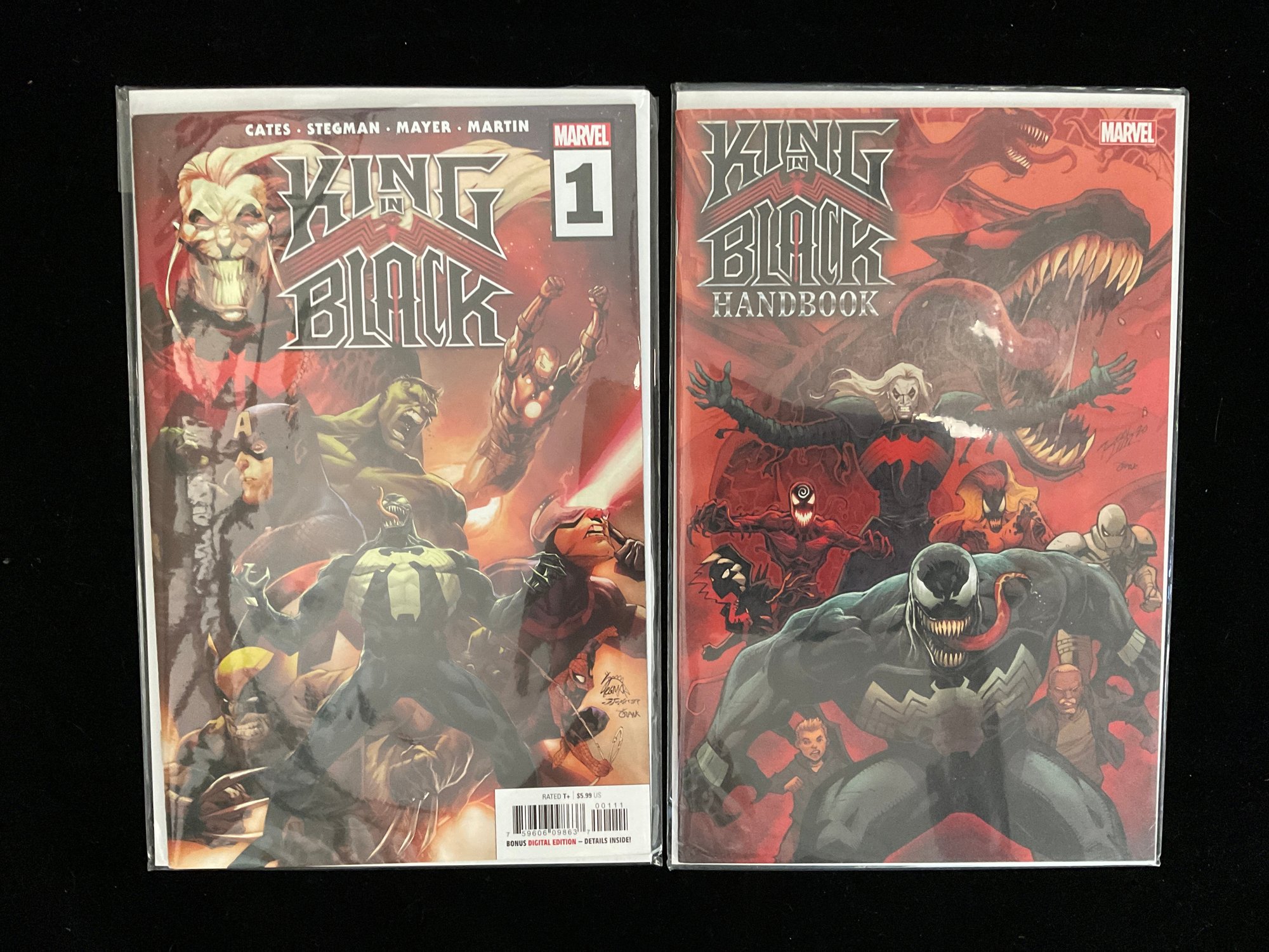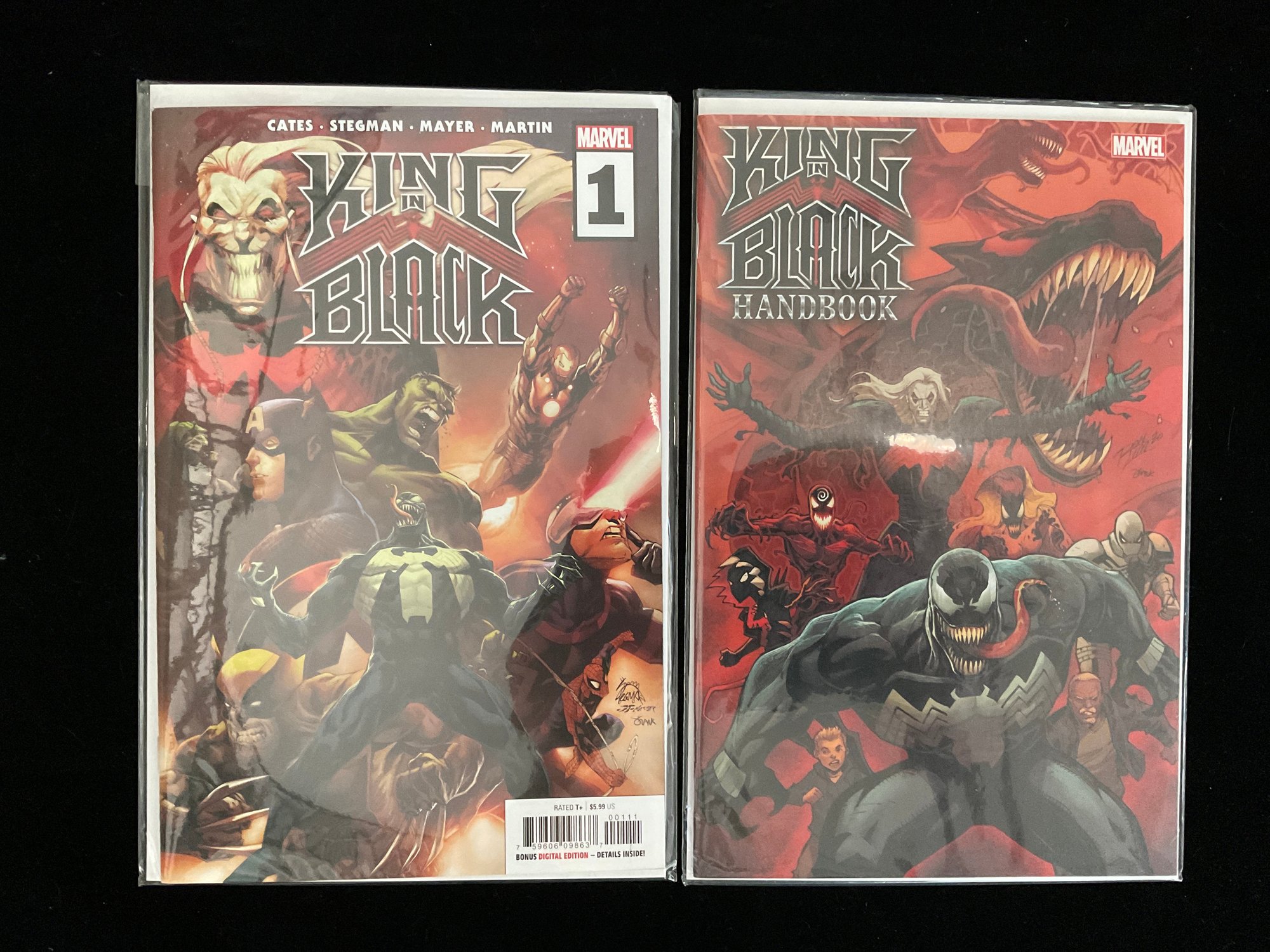 King in Black #1 (2020): This is the first issue of the five-part main event series, written by Donny Cates with art by Ryan Stegman. The cover features Knull, Venom, Captain America, Hulk, Wolverine, and Iron Man.