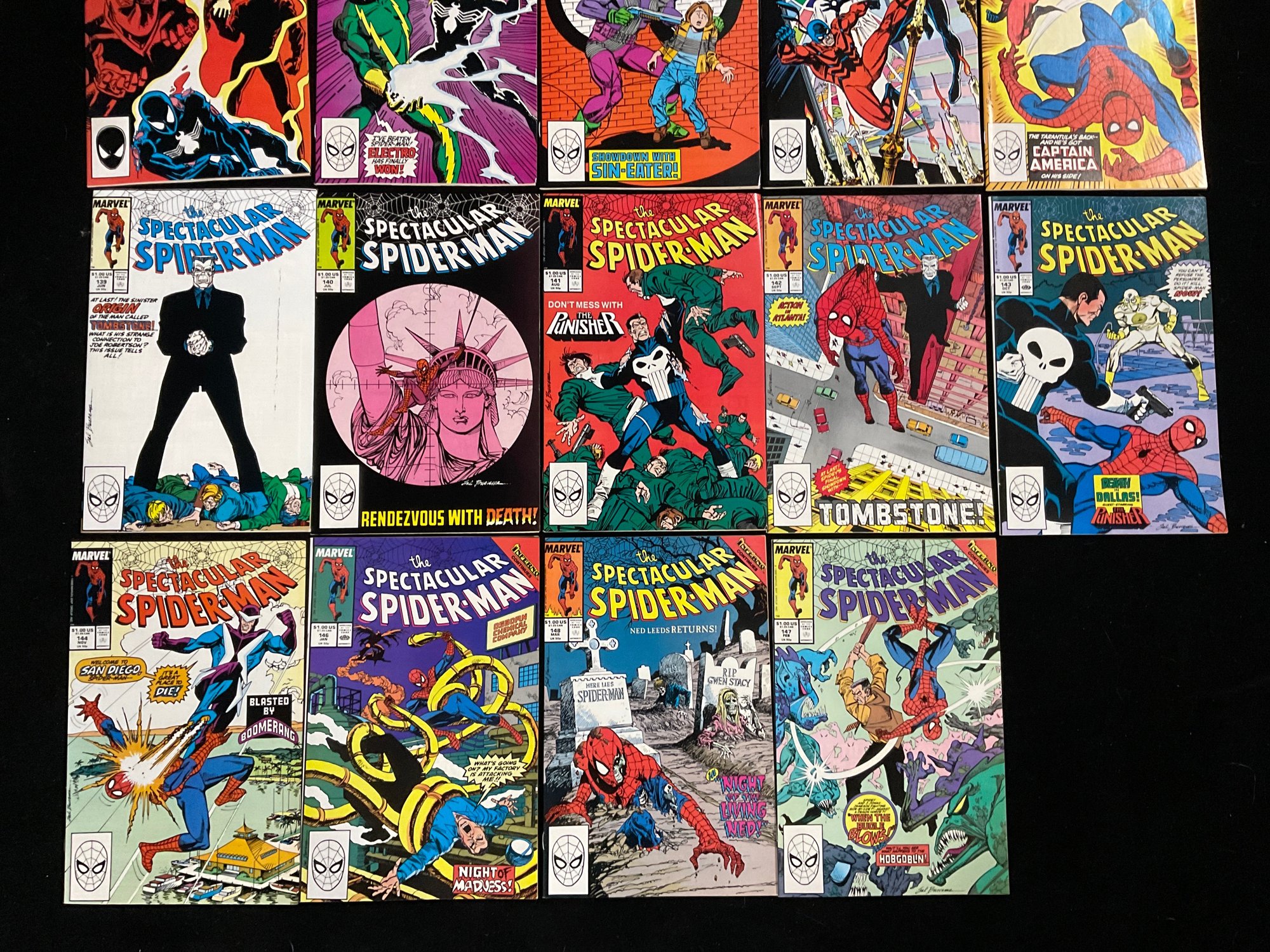 #134, #135, #136, #137, #138#134: First issue with the shortened title "The Spectacular Spider-Man" and the release of Sin-Eater. #138: Features a battle between Captain America and the Tarantula.