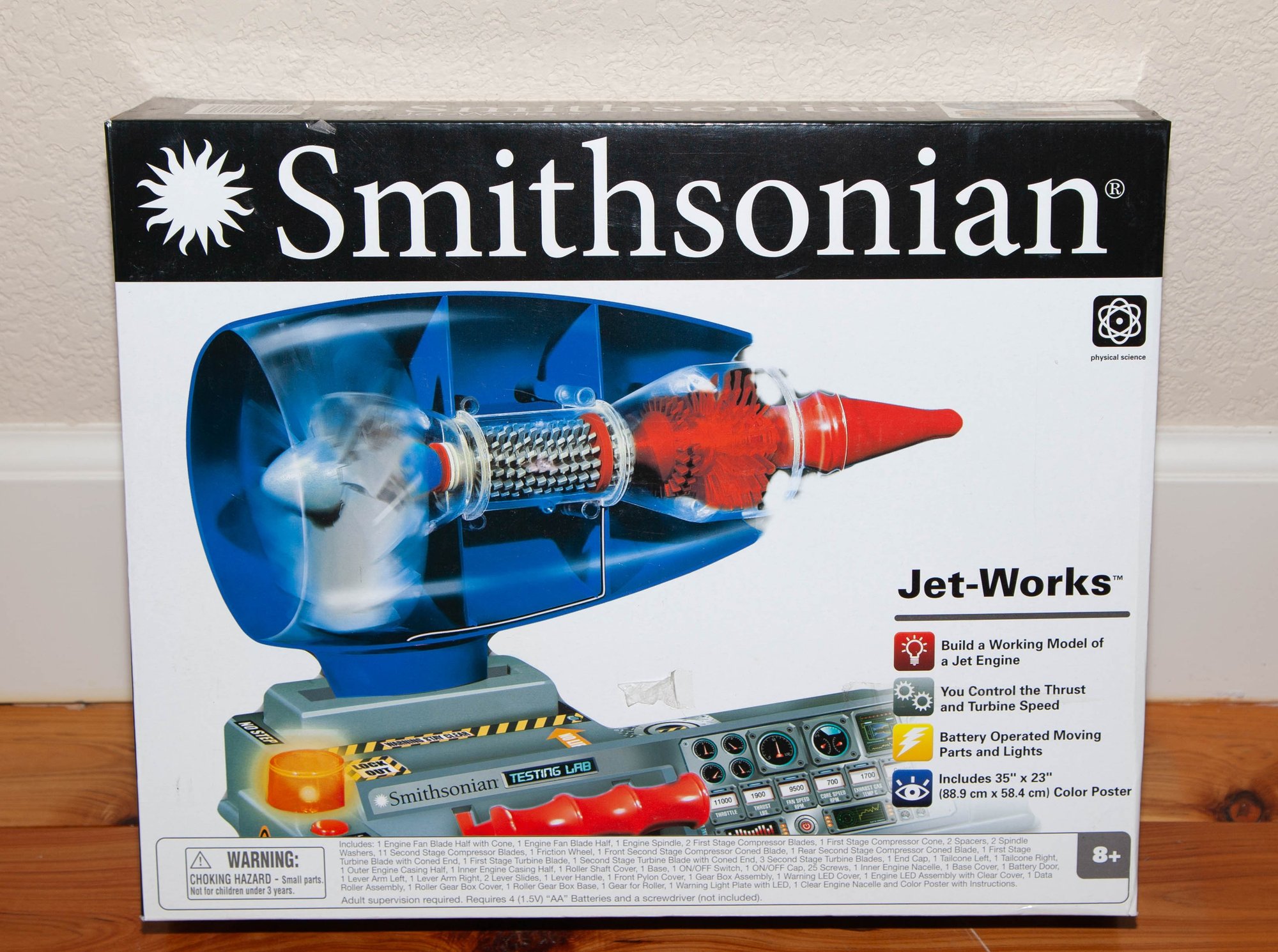 Features: Allows users to build a functioning model of a jet engine with moving turbine blades and lights powered by two "AA" batteries.