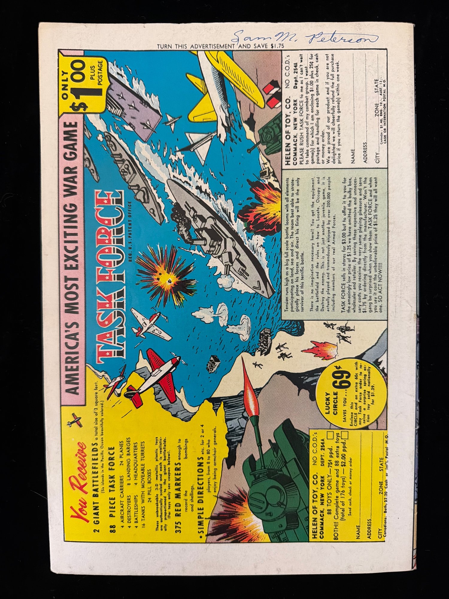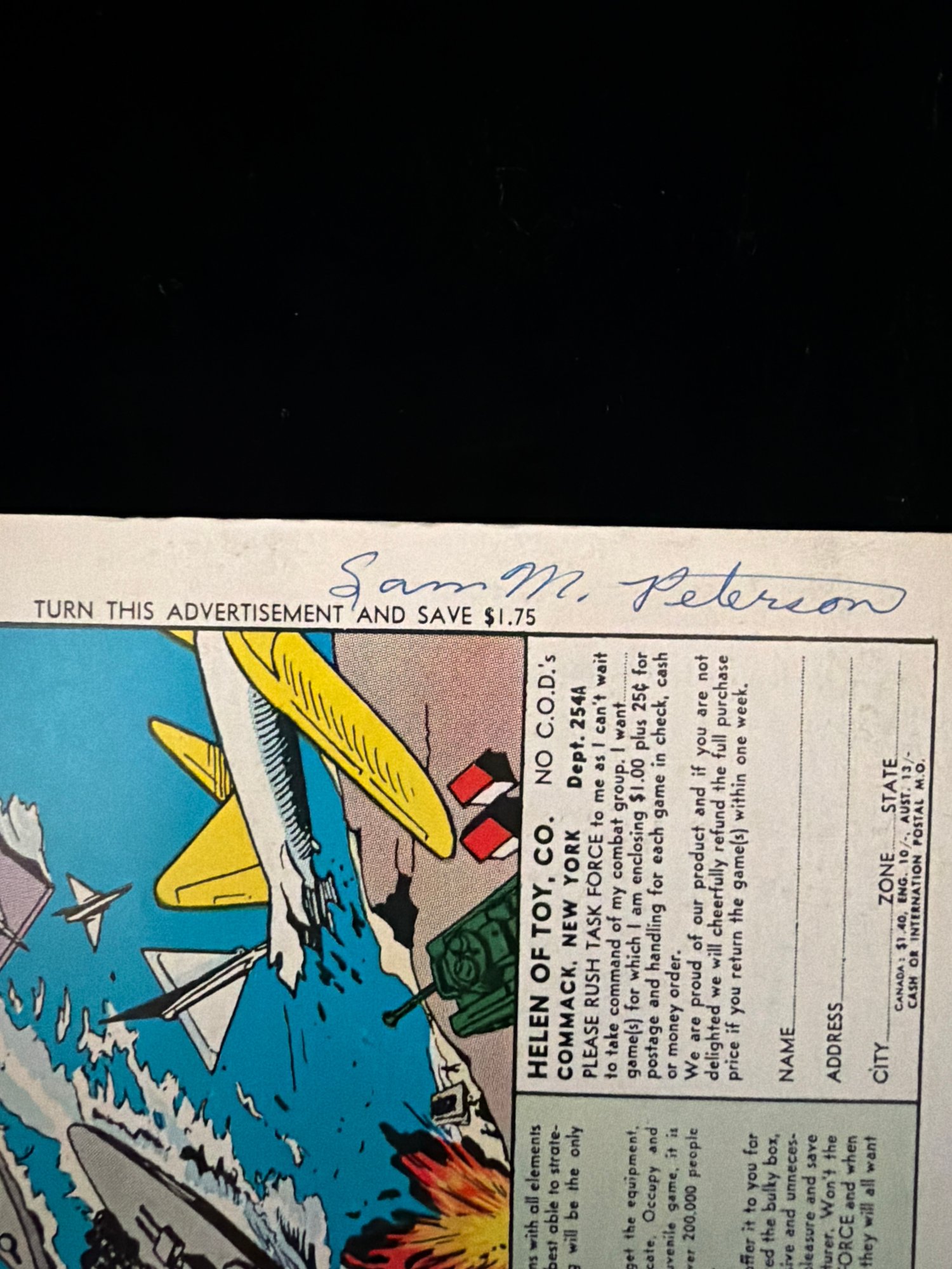 Sam M Peterson hand written on the front and back