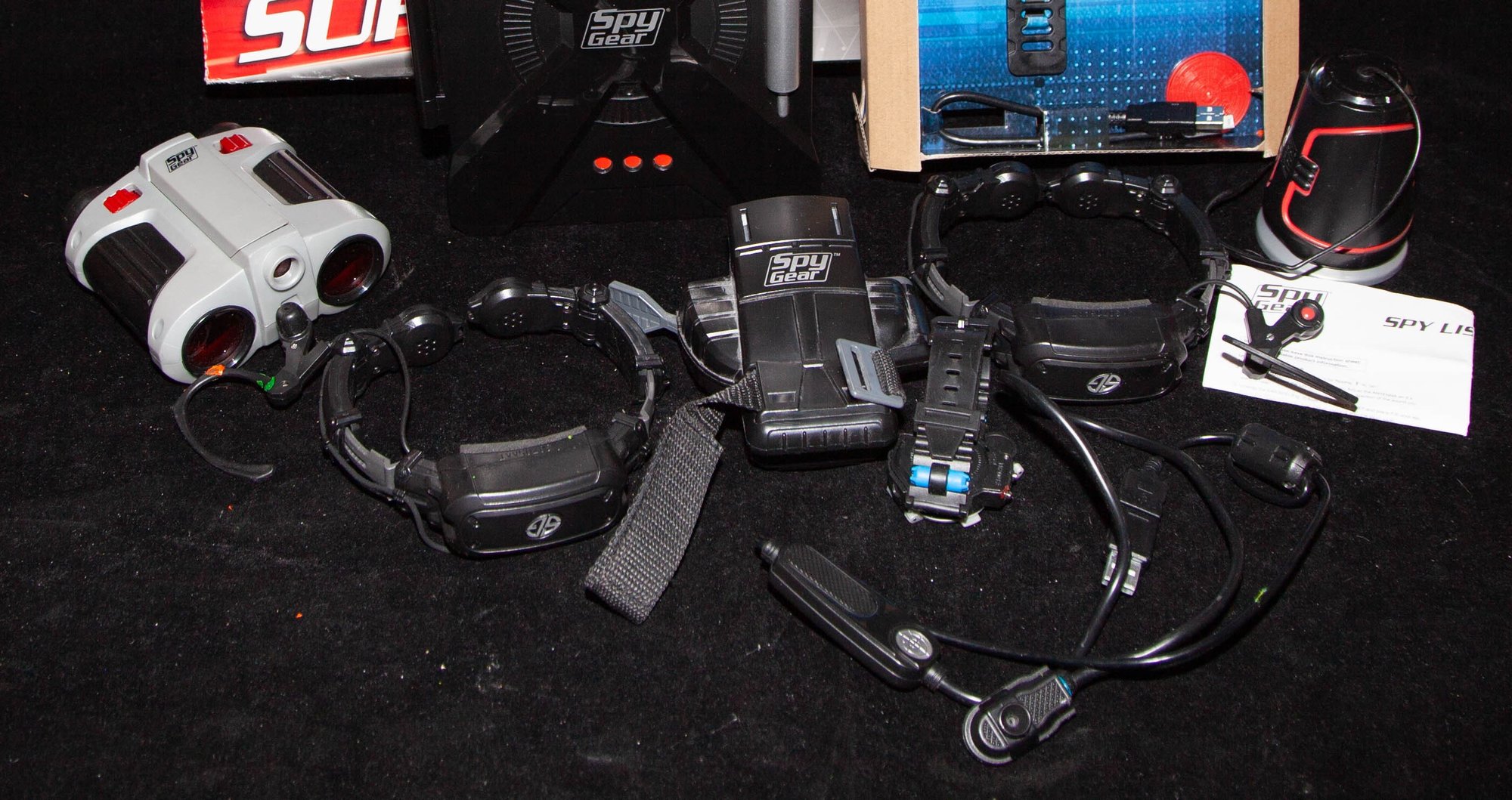 A collection of gadgets designed for children to engage in pretend spy roleplay