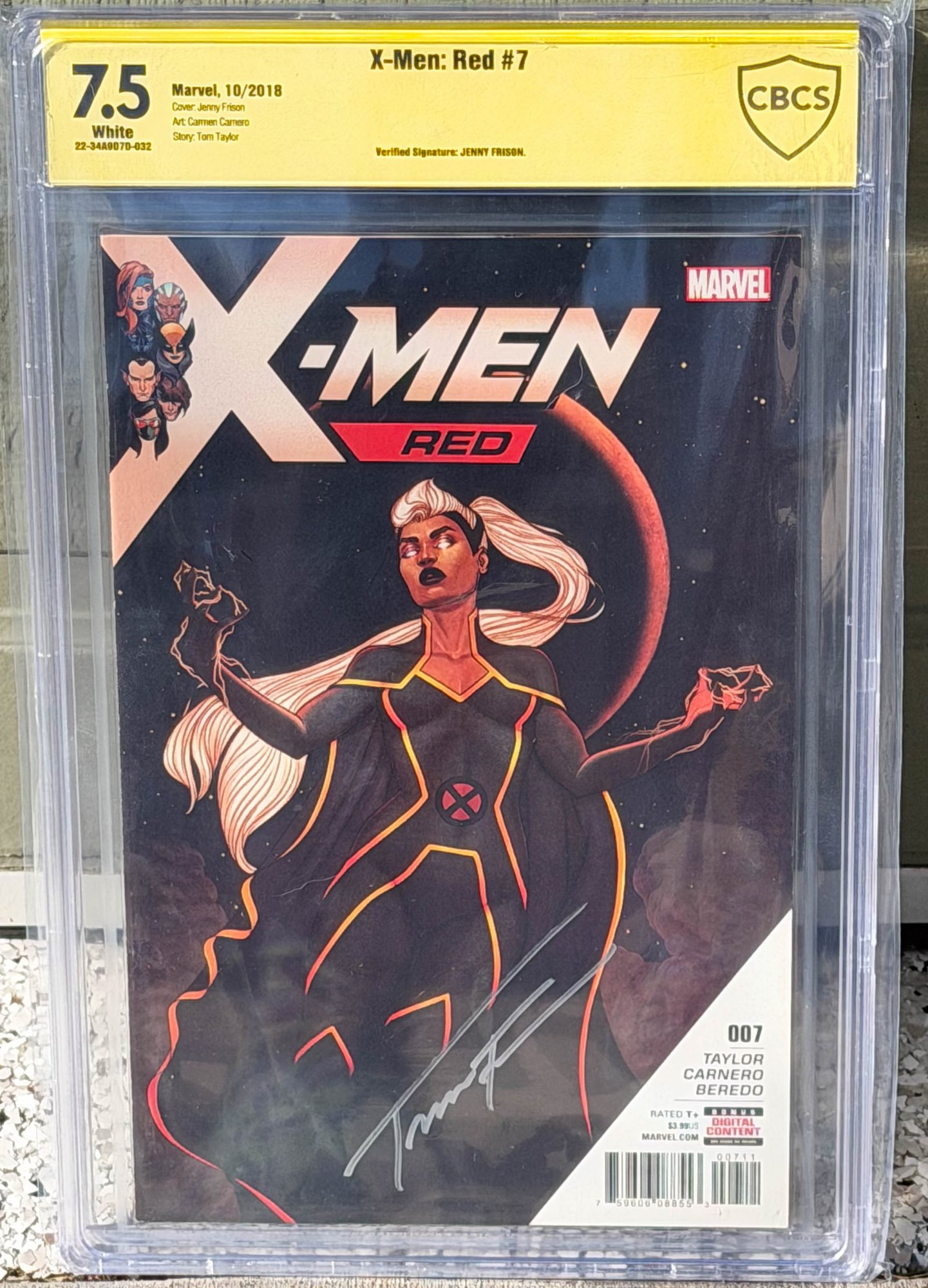 This particular copy features a variant cover illustrated by Jenny Frison, depicting the character Storm (Ororo Munroe). In this chapter, titled "The Hate Machine: Part 7," the X-Men face off against Cassandra Nova. The plot involves Magneto traveling to the future to escape his present, while the rest of the team (including Jean Grey and Storm) works to protect Atlantis from one of their greatest foes.