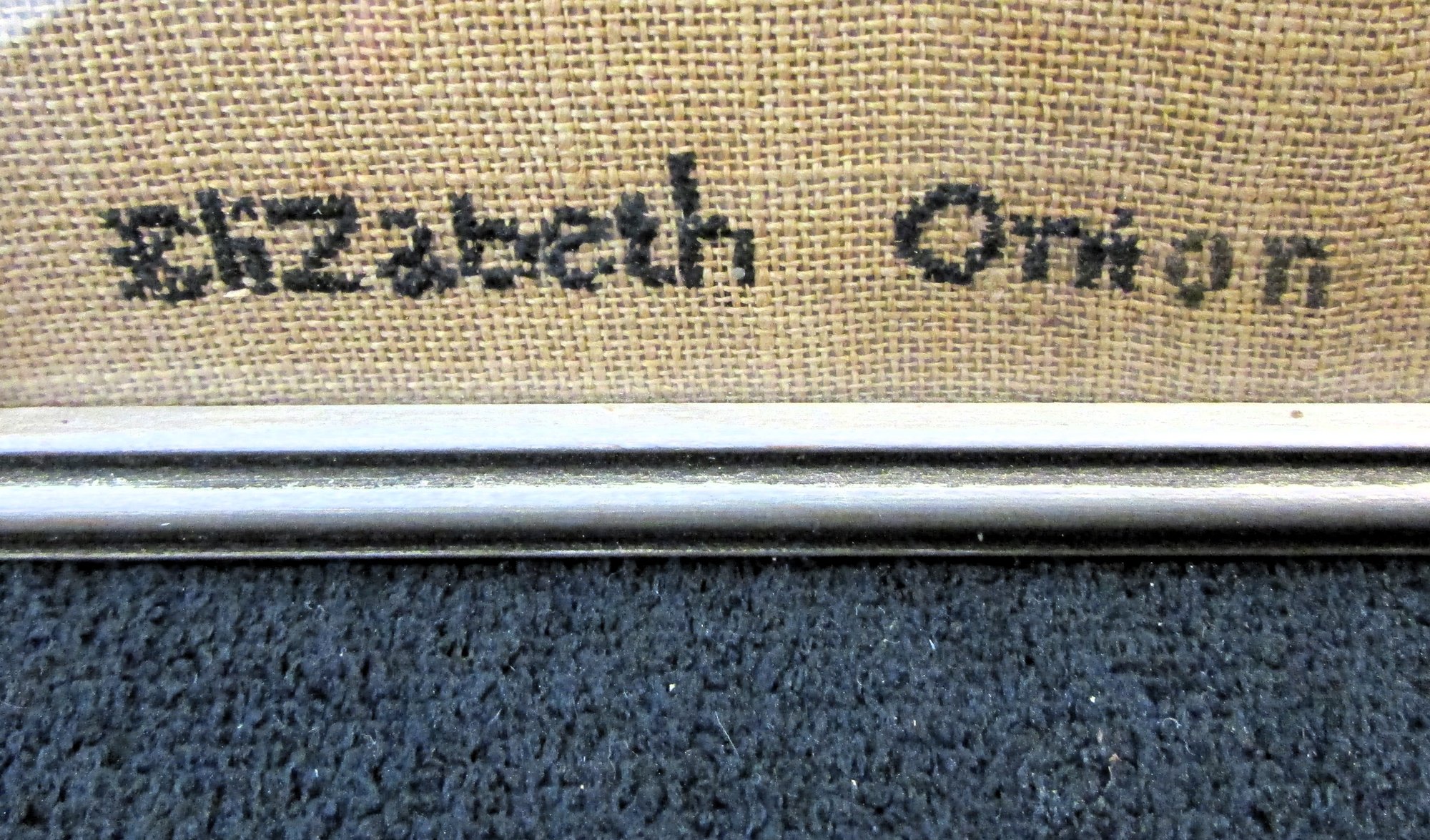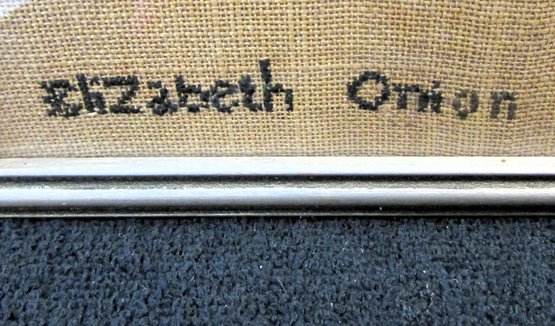 The sampler of typical stitched form with Bible verse, the makers name lower left "Elizabeth Onion." Family history in pen on reverse.
