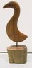 In the form of a standing bird on a wood base. Signed on the underside "Paul Gephart Milo."
