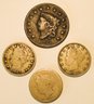 The lot comprised of an 1832 One Cent piece and three nickels, 1887 (heavily worn) 1902 and 1907. Not graded.