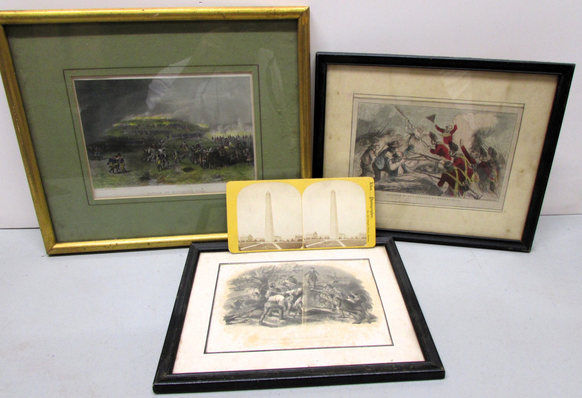 The lot comprised of a Stereoview of the Bunker Hill Monument together with engravings of the Battle by Alphonse Chappel, S. Holley and Whitney Jocelyn-Annin.